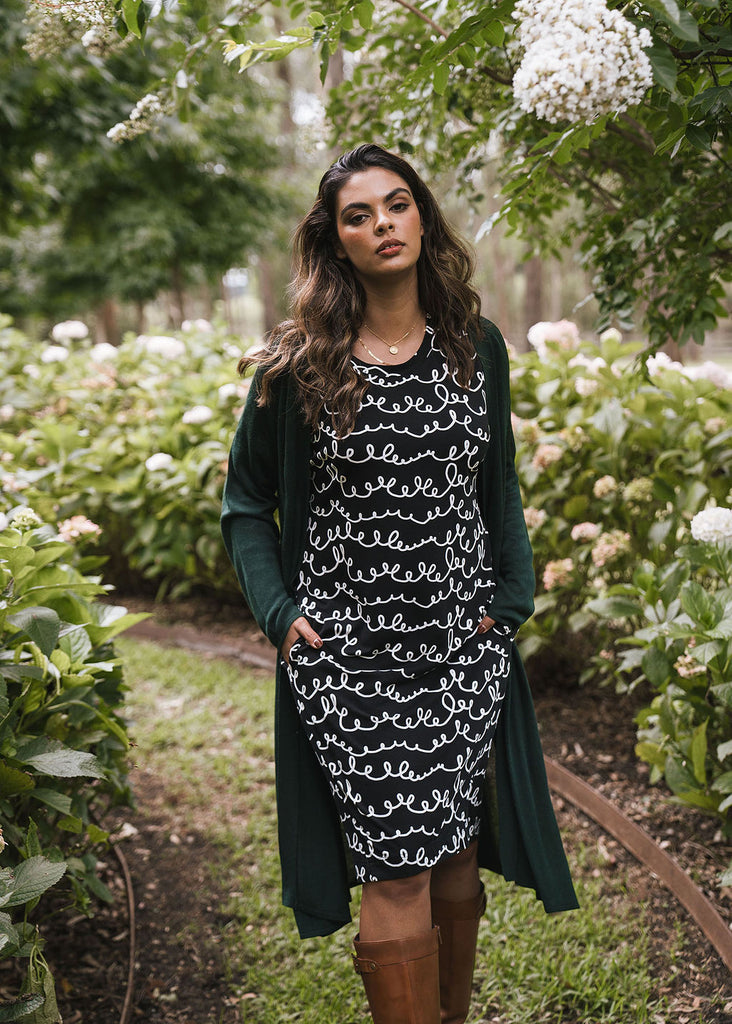 Turner Long-Sleeve Bamboo T-Shirt Dress - Squiggle