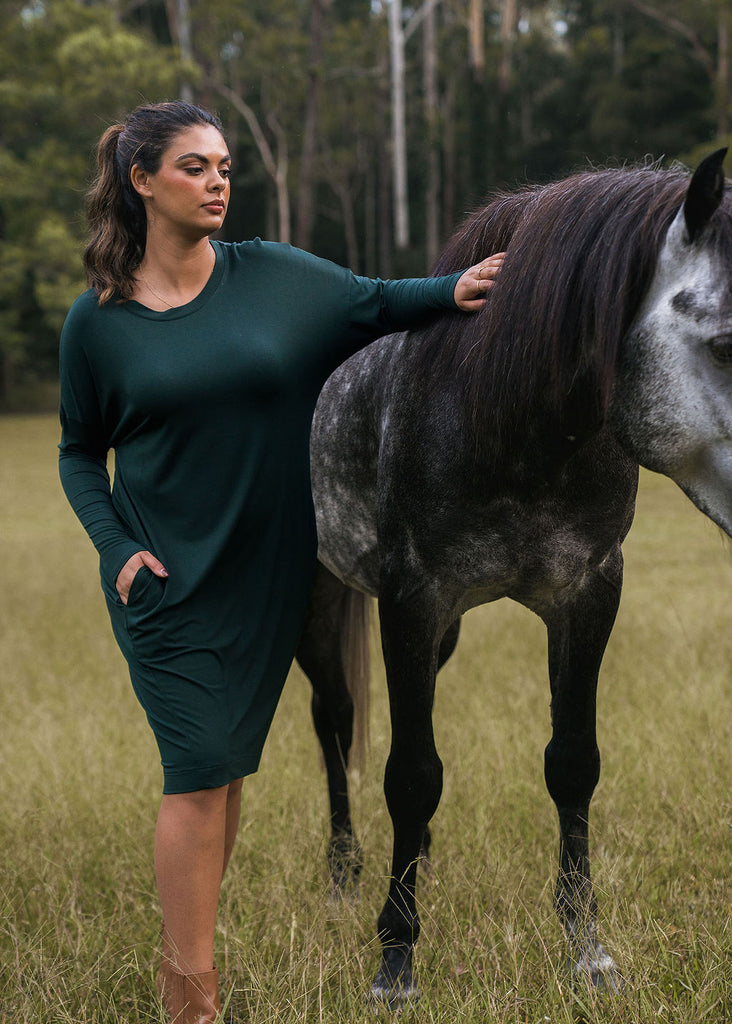 Turner Long-Sleeve Bamboo T-Shirt Dress - Dark Green