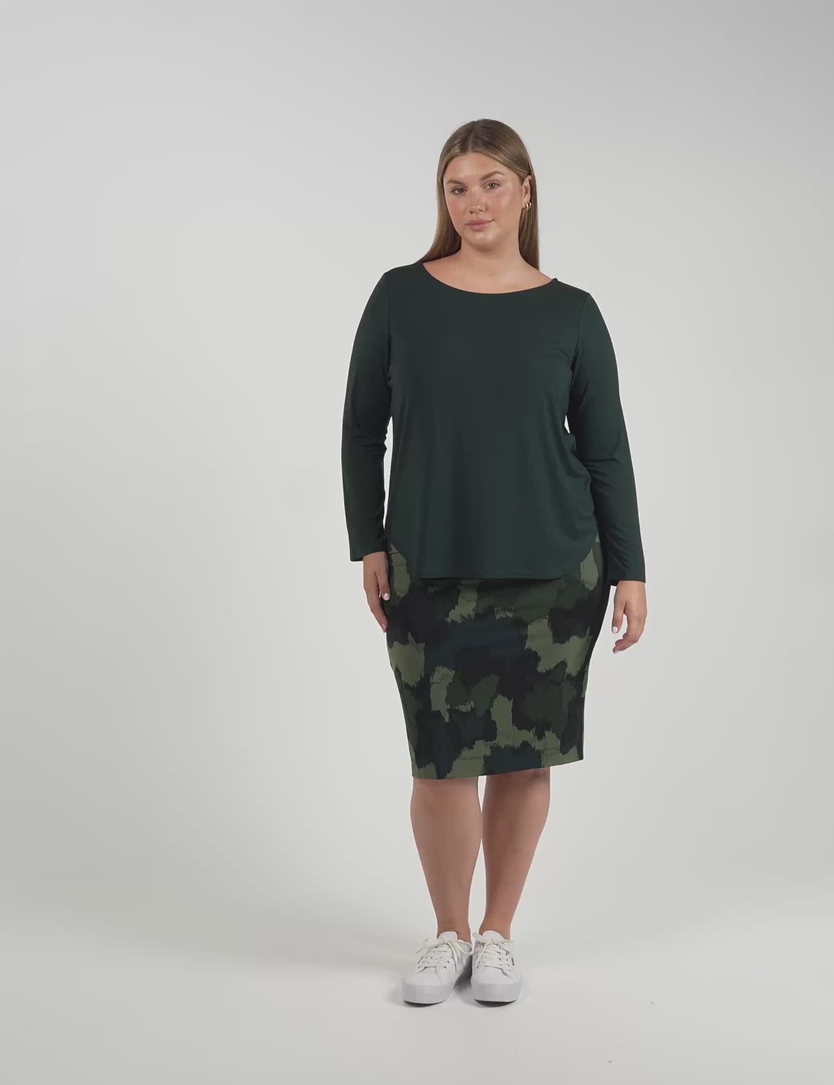 Our Adele Bamboo Long Sleeve Top is a lovely and stretchy style made with our signature, luxuriously soft bamboo fabric. This top is thermo-regulating and naturally moisture wicking, making it a perfect layering piece.