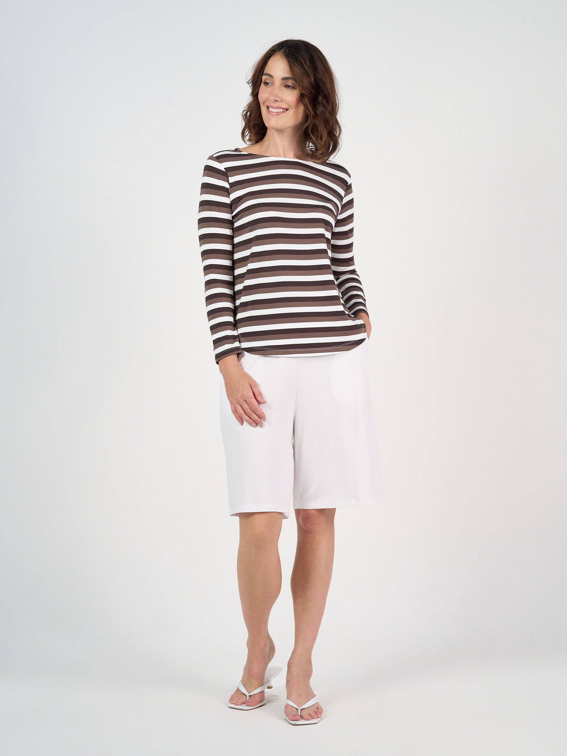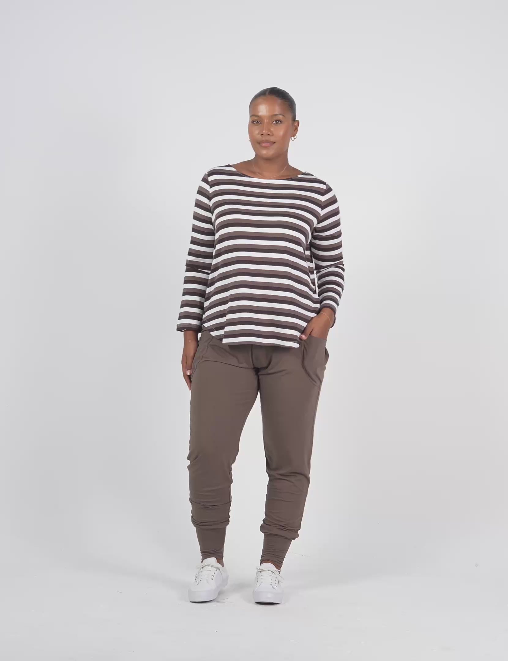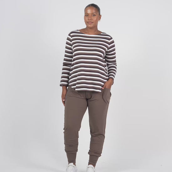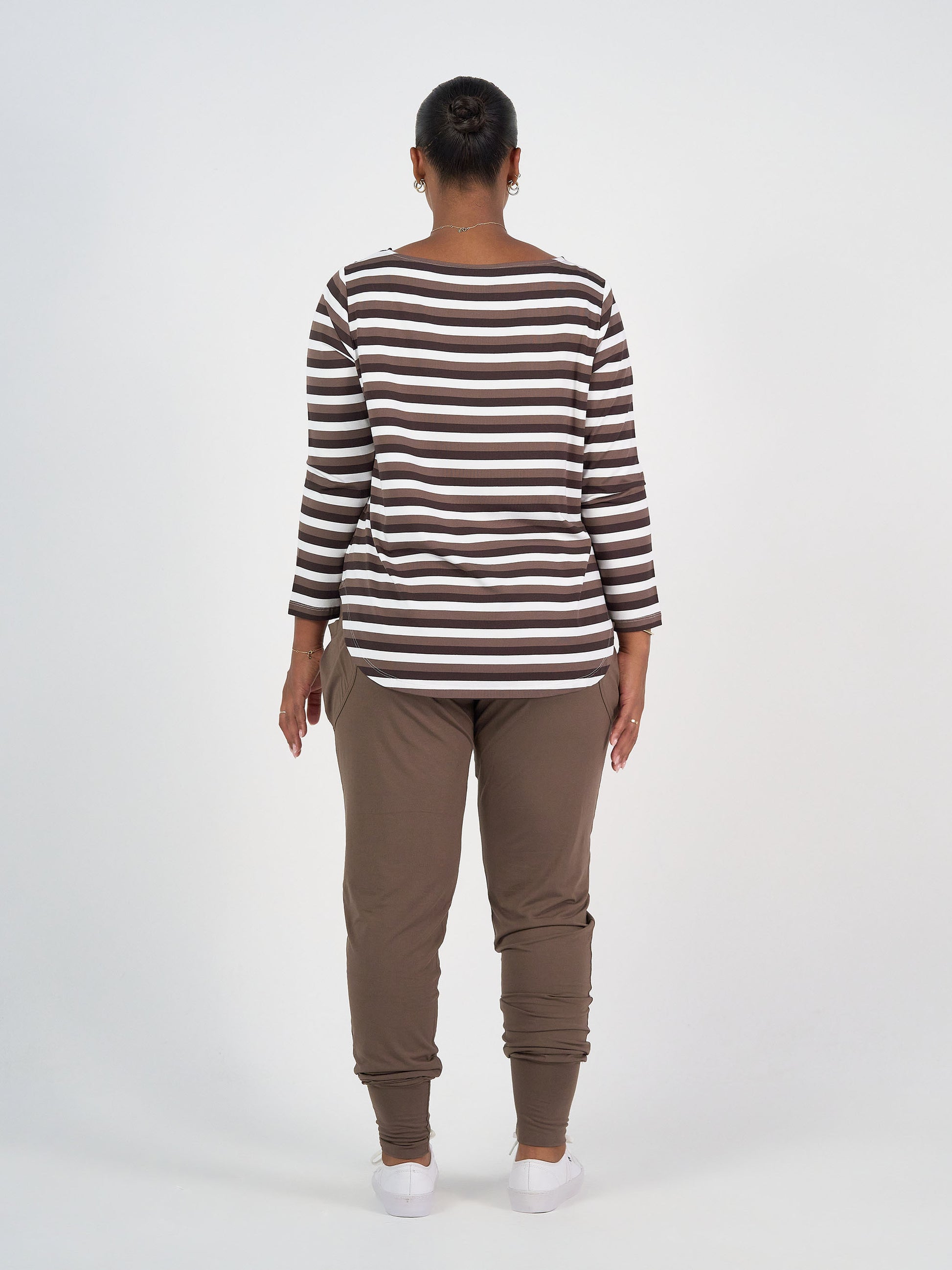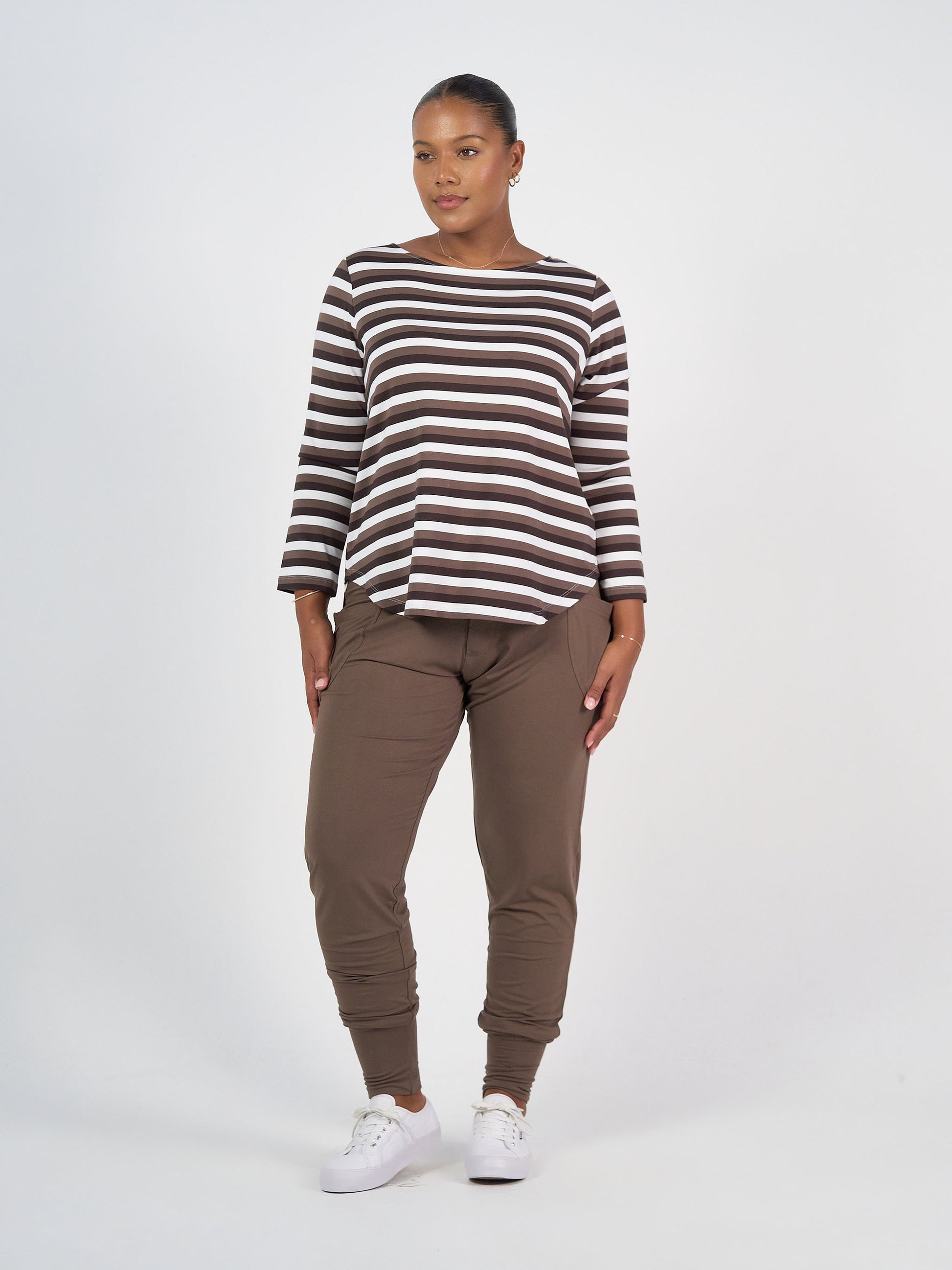 Adele Long Sleeve Bamboo Top - Brown Stripe