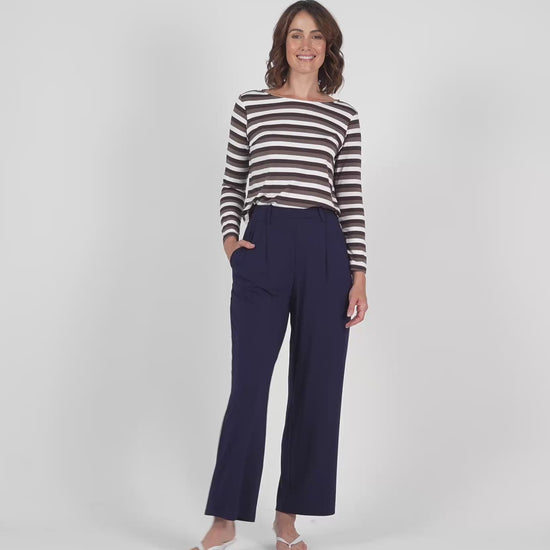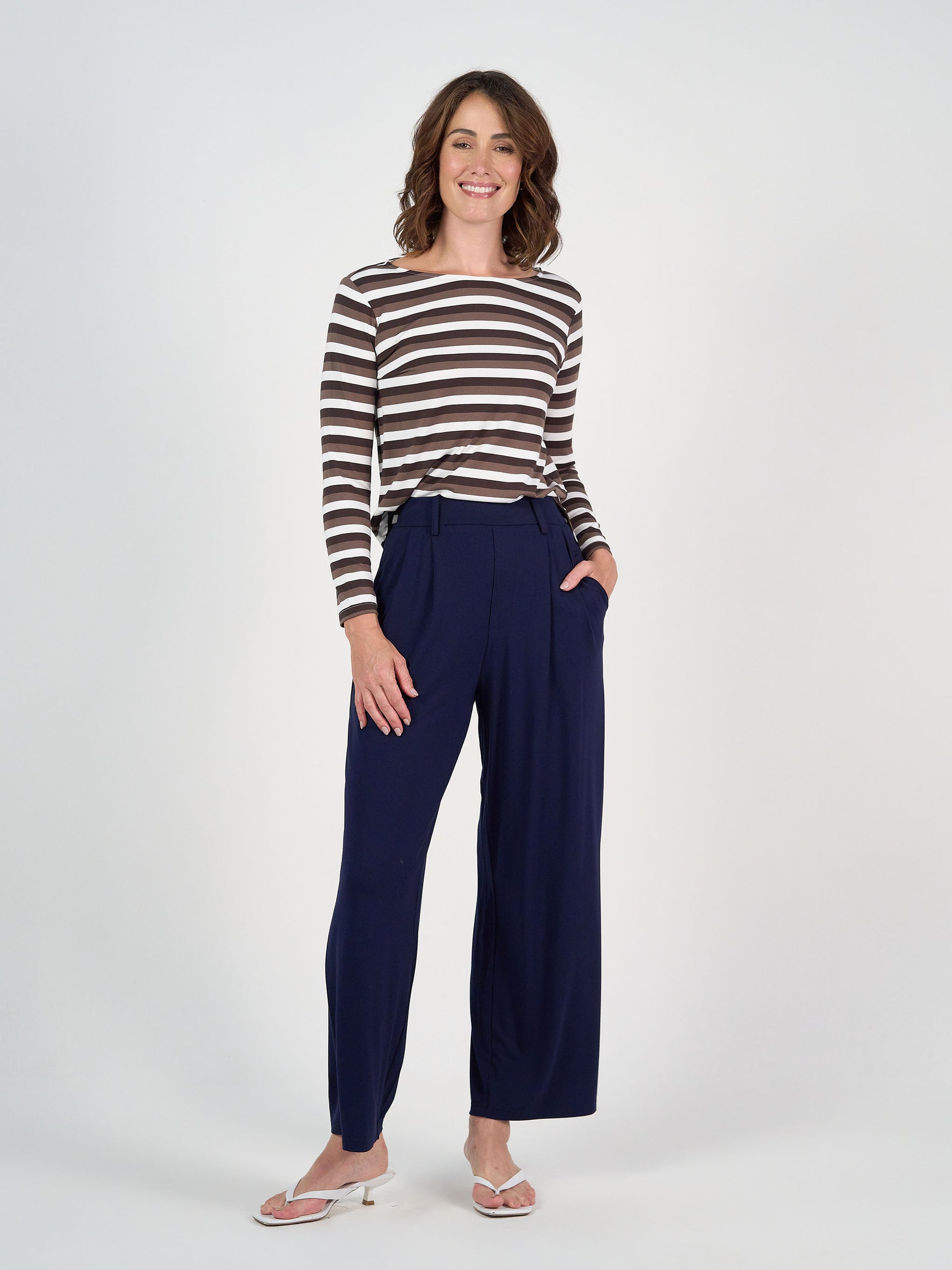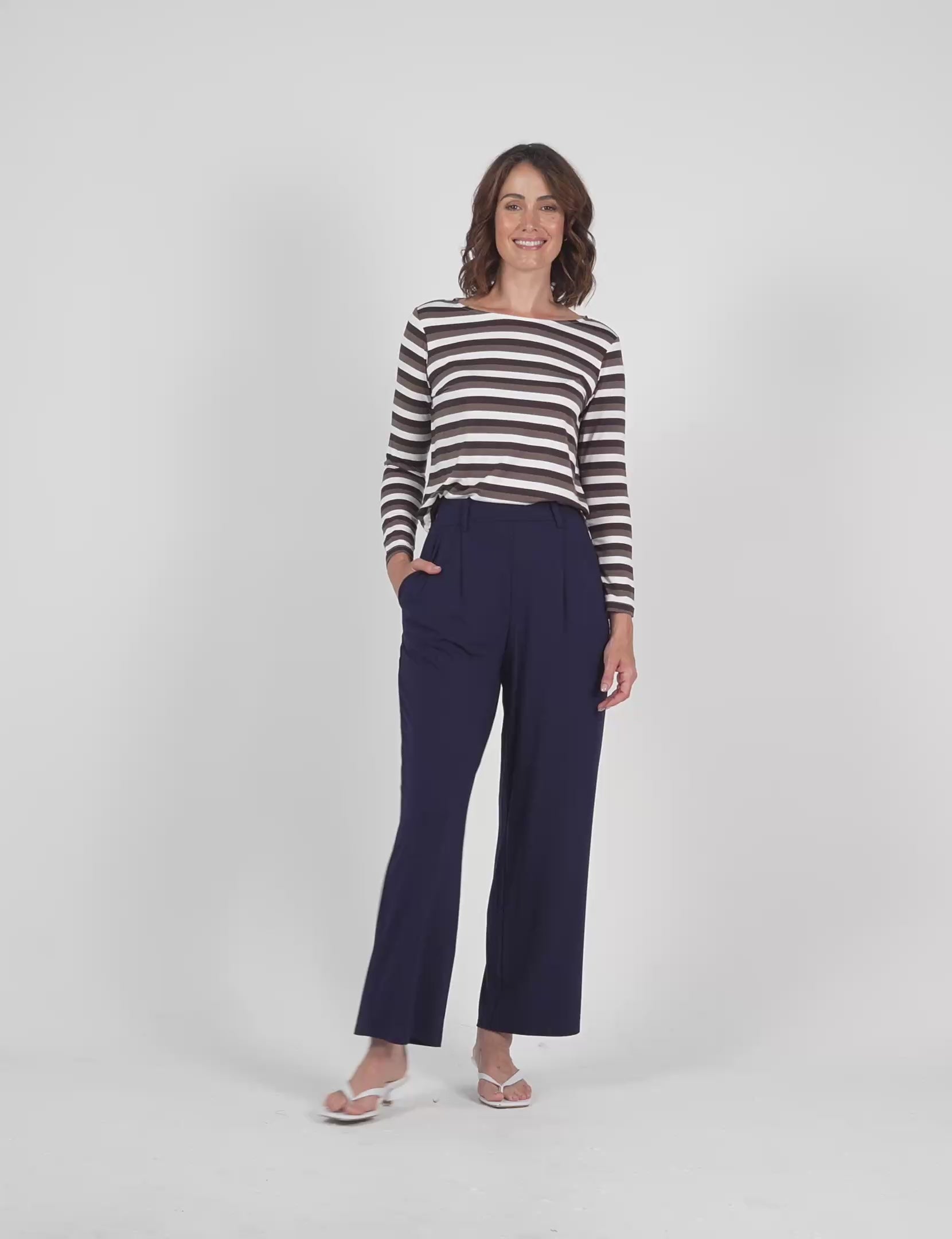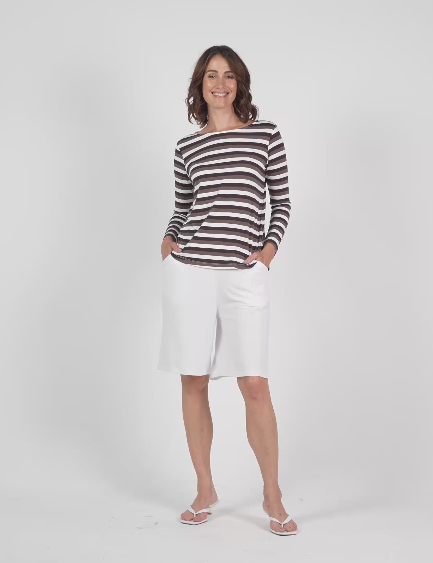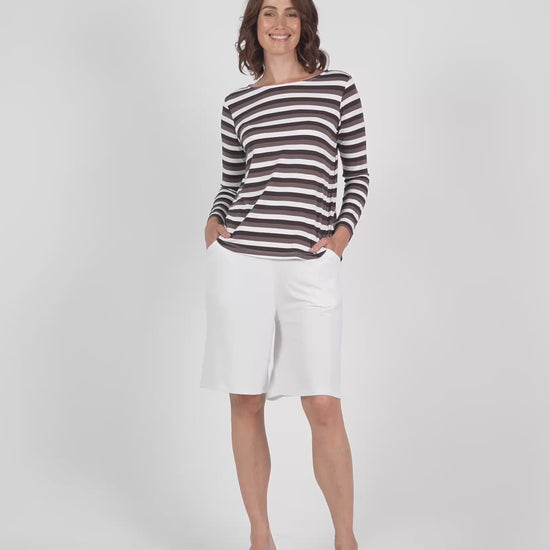 Adele Long Sleeve Bamboo Top - Brown Stripe