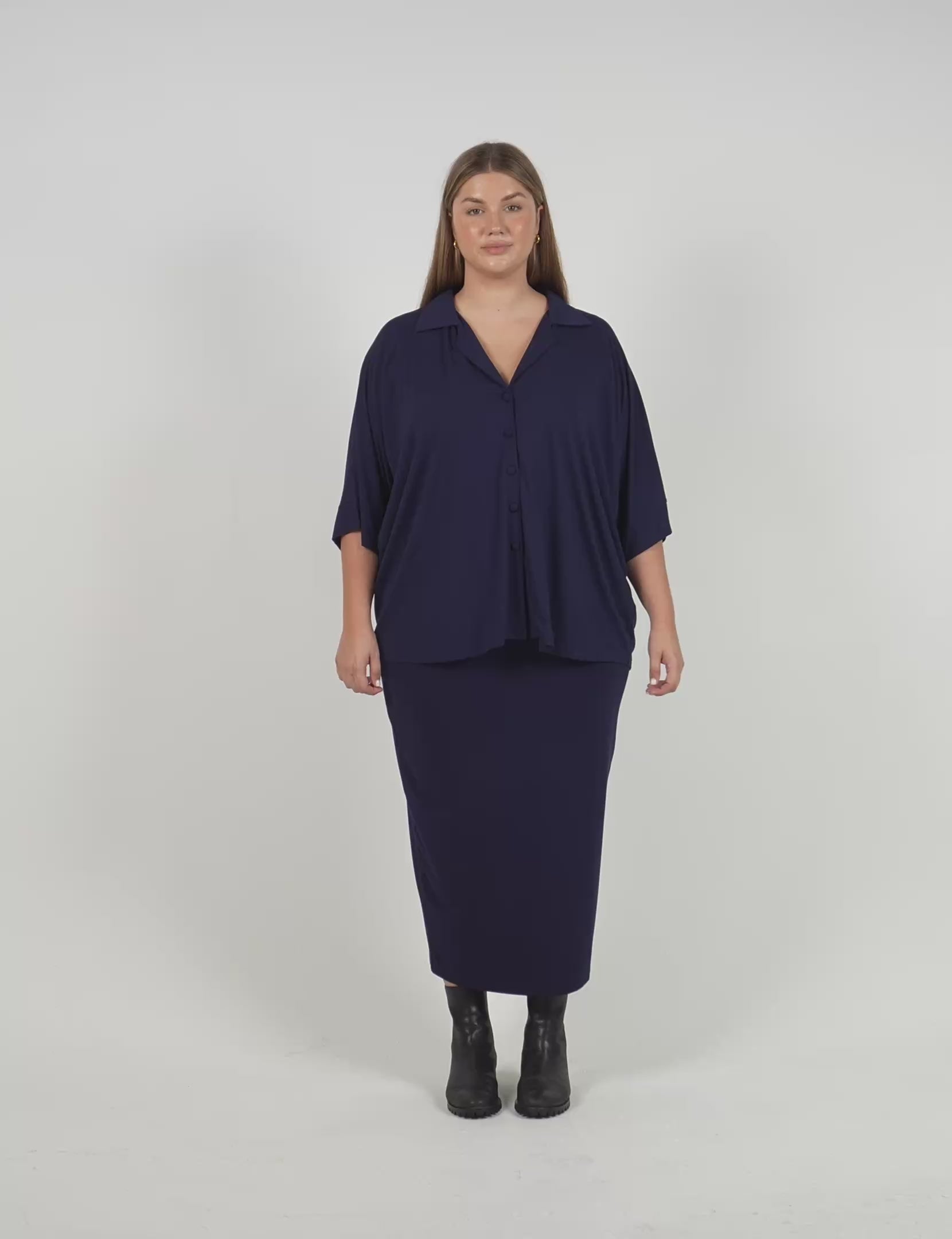 Alanis 3/4 Sleeve Collared Bamboo Shirt - Navy