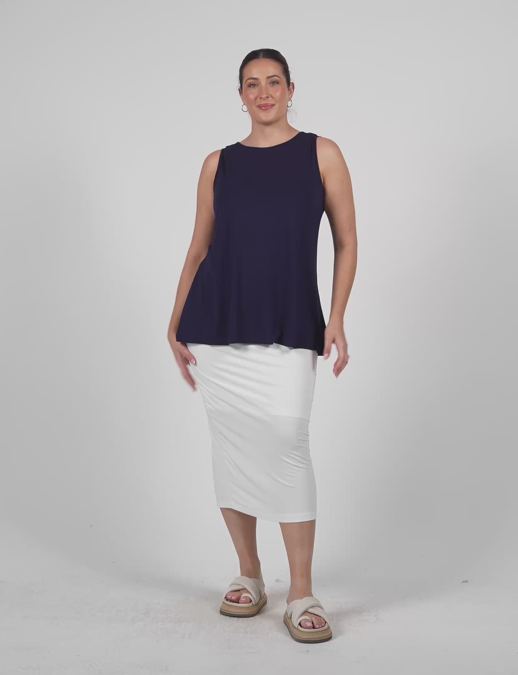 With a generous casual fit, the Alicia Bamboo singlet swings away from the tummy and thighs making it a flattering delight to wear. We have made this singlet with a little extra length and it has the benefit of being able to be worn back to front for those who prefer a higher neckline.