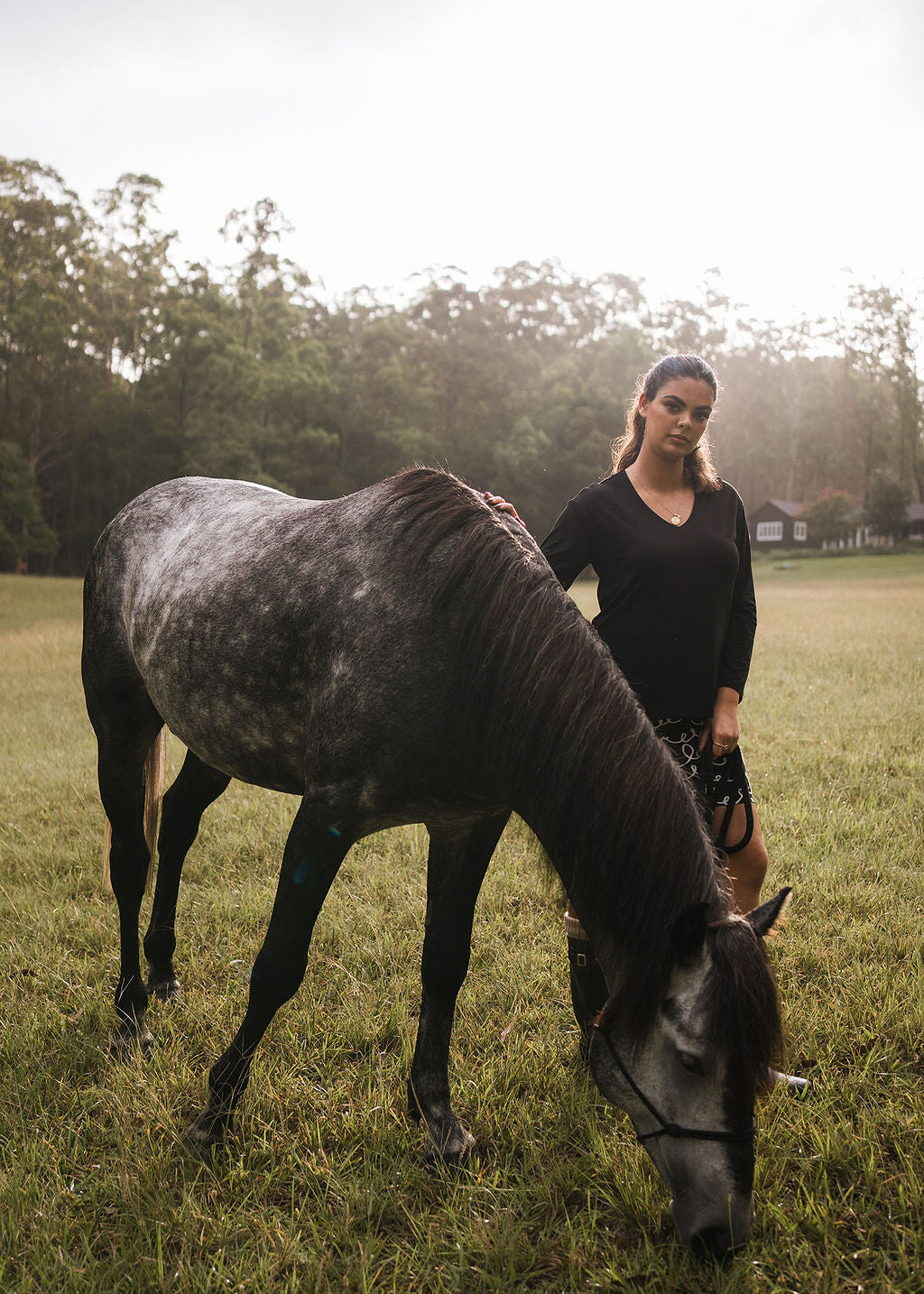 Our latest arrival, the Braxton Bamboo Long Sleeved Top is a lovely and stretchy style made with our signature, luxuriously soft bamboo fabric. Featuring a v-neck and high side seam slits. This top offers casual style with a relaxed and loose fit. We have made this top with a little extra room and longer in length to cover the hip and bottom area. Pairs beautifully with our Luxe Bamboo Legging and our new Warwick Bamboo Fold Down Pant.
