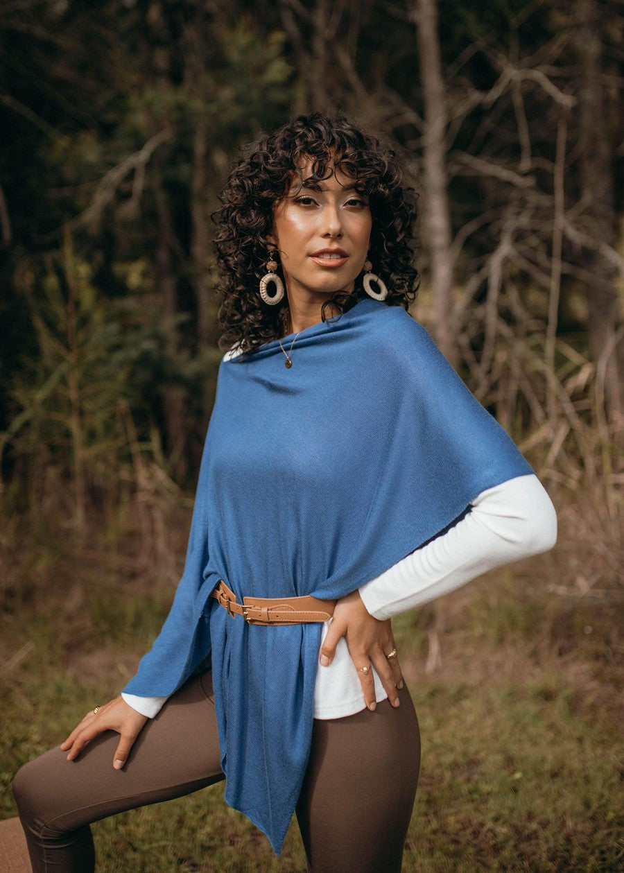Carrie Cashmere/Bamboo Poncho - Ocean Blue