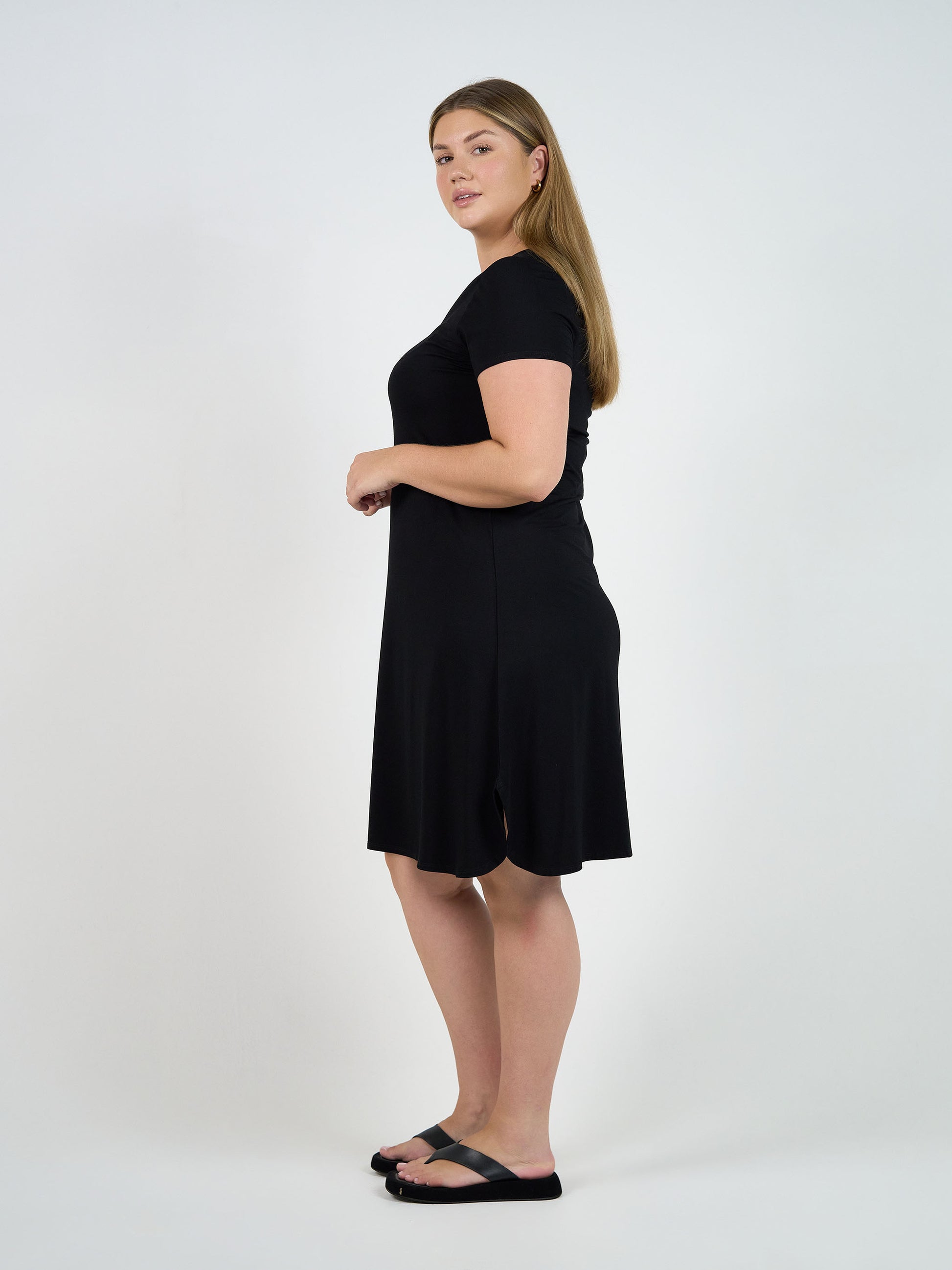 Cher Bamboo Short Sleeve T-Shirt Dress - Black