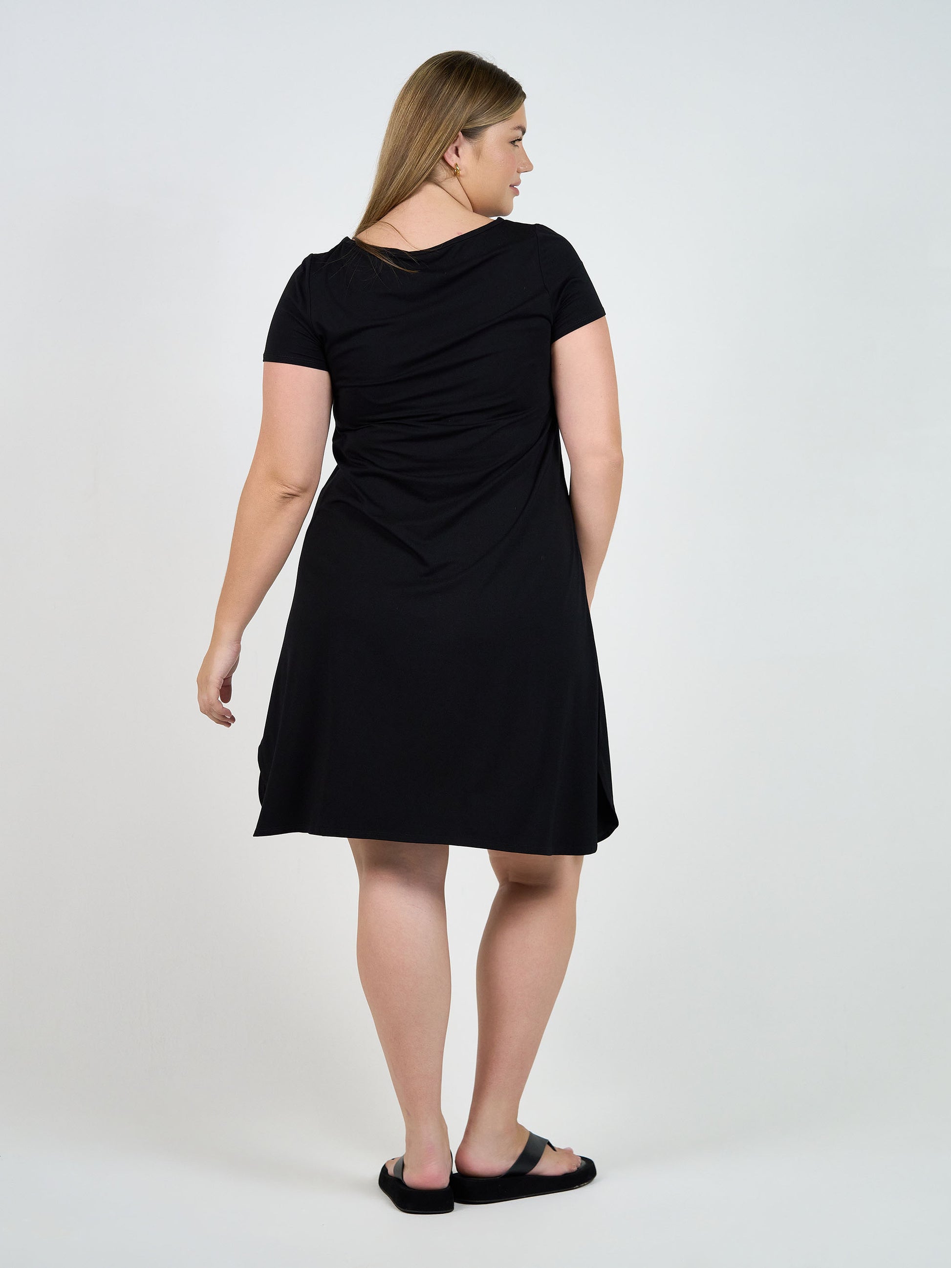 The Cher Bamboo Dress is a beautifully soft T Shirt style featuring short sleeves and a lovely curved swing hem. Made with our luxuriously soft and breathable bamboo fabric, this dress is perfect for effortless style.