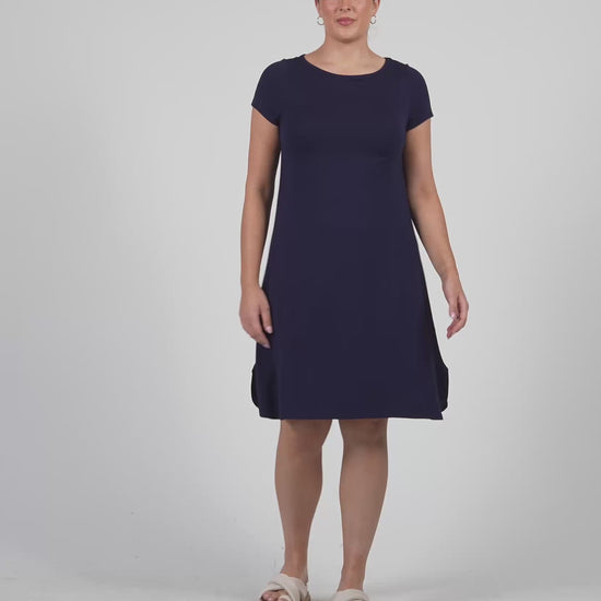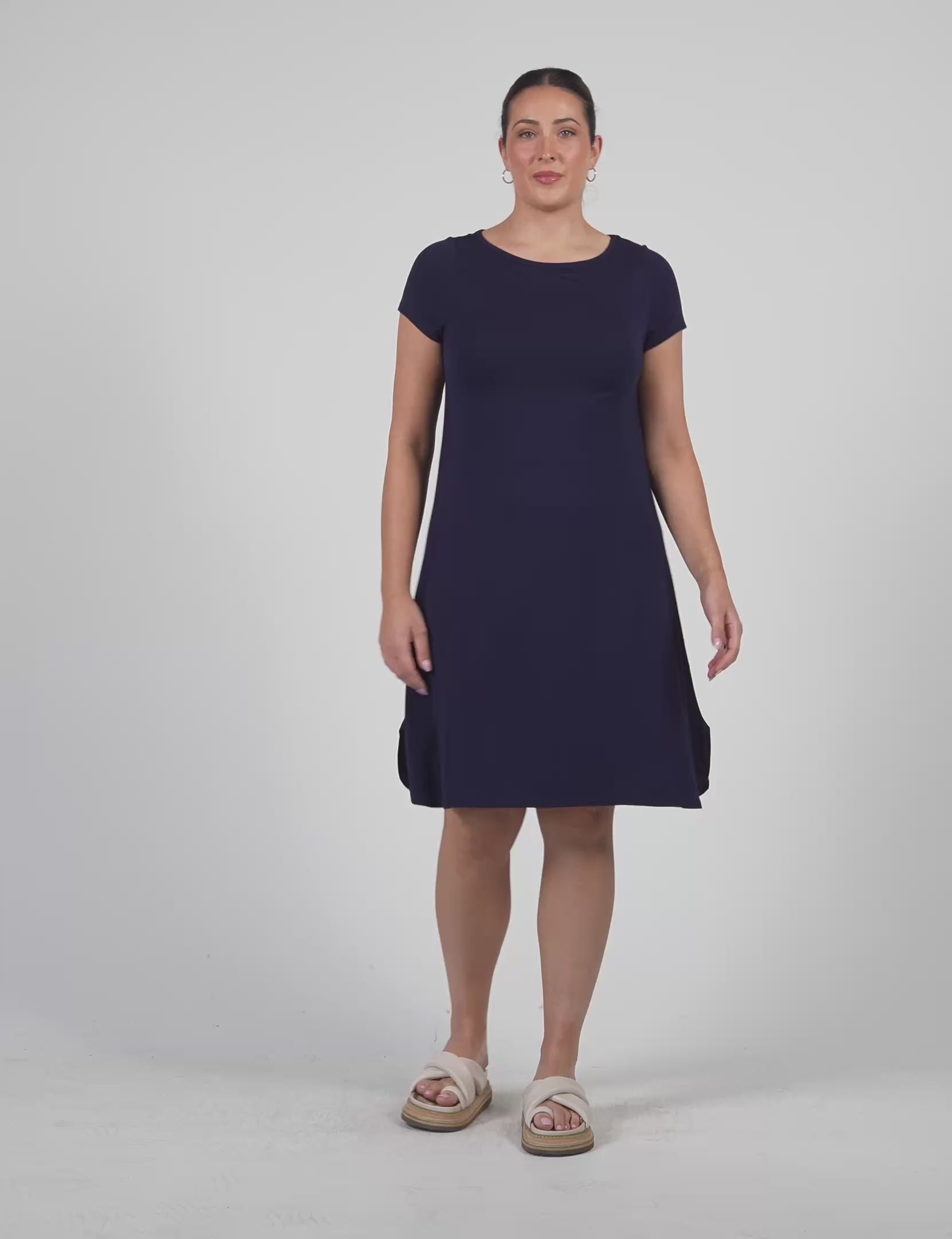 Cher Bamboo Short Sleeve T-Shirt Dress - Navy