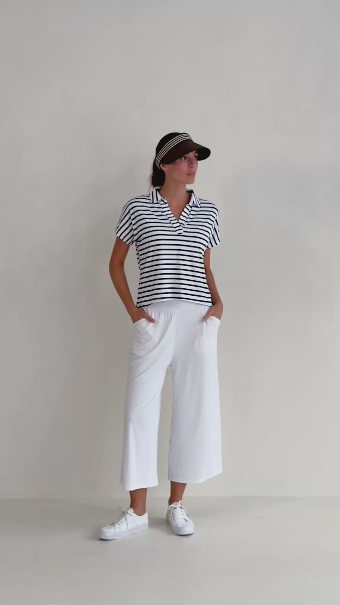 Comfort re-designed in this wide leg 7/8 cropped bamboo culotte. Featuring side pockets and our super comfortable and functional wide waist band with elastic panel at back for that easy 'pull on' style. These culottes are the perfect trans-seasonal pants.
