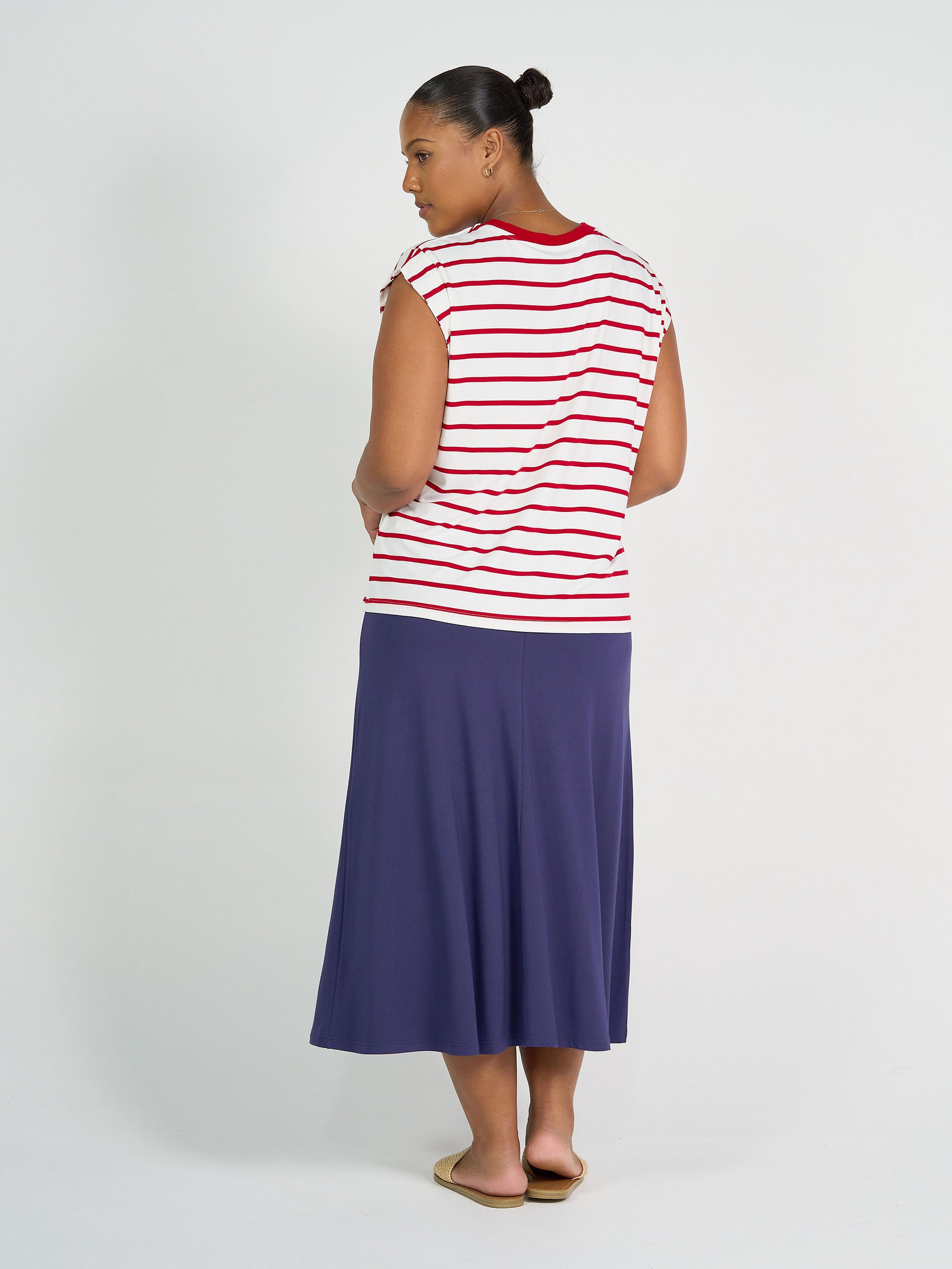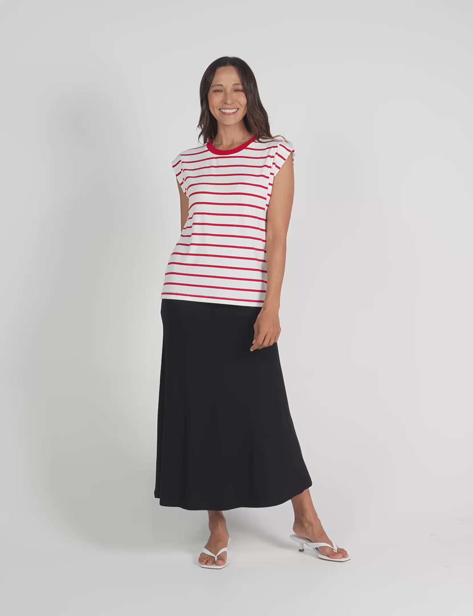 Maxi Bamboo Whitney Tube Skirt - Lipstick & White Stripe