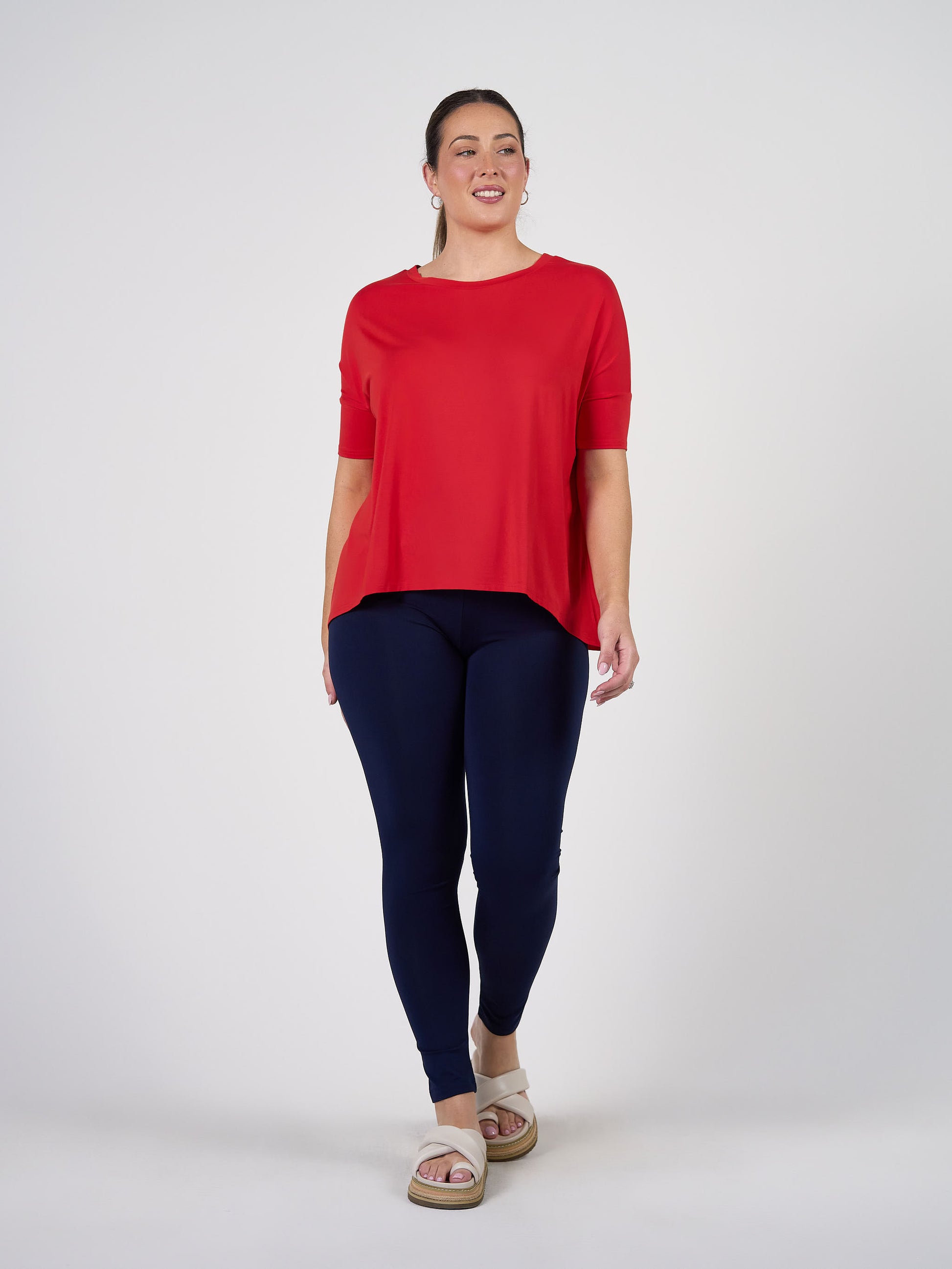 Versatile go-to oversized bamboo tee that feels heavenly against your skin. Featuring a relaxed draped fit with round crew neck this tee is hip length with fitted, cuffed mid length sleeves.
