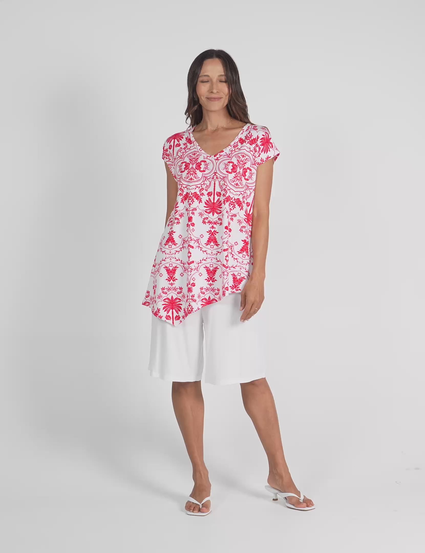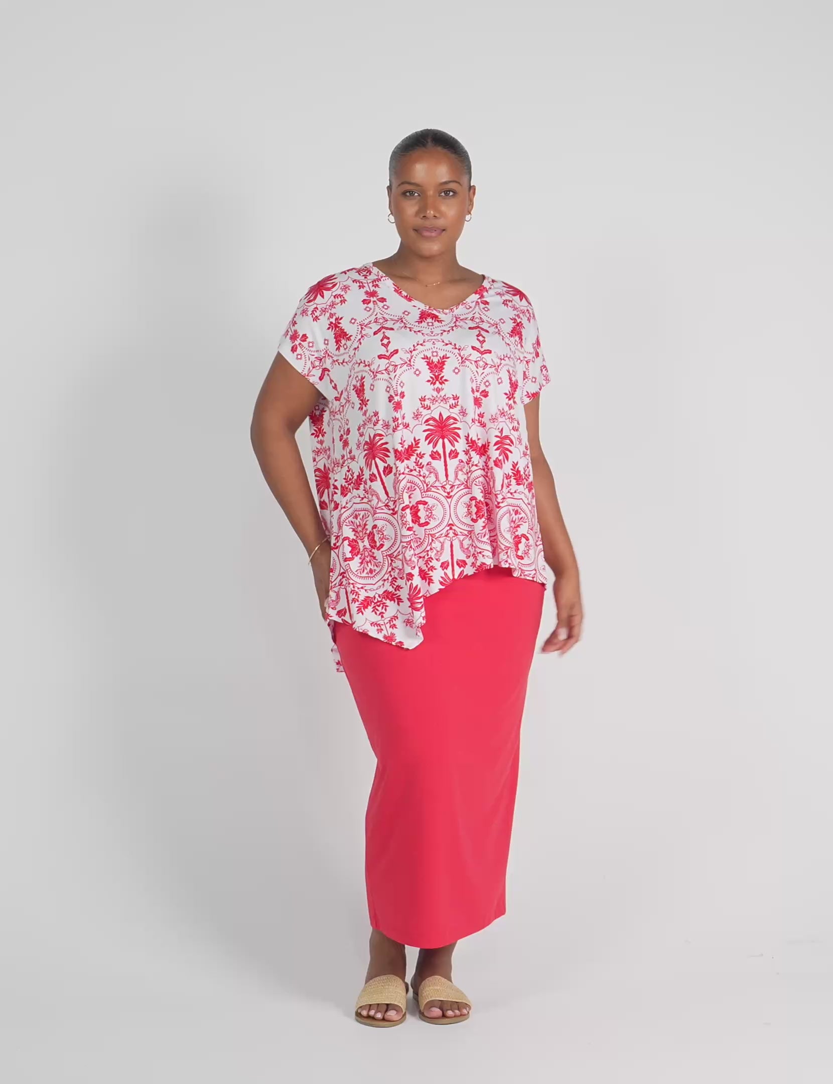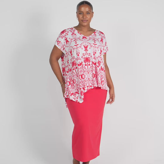 Holiday Asymmetrical Bamboo V-Neck T-Shirt - Lipstick Palm