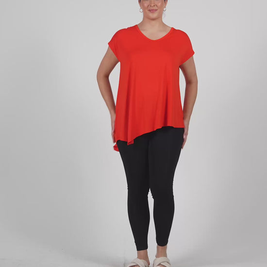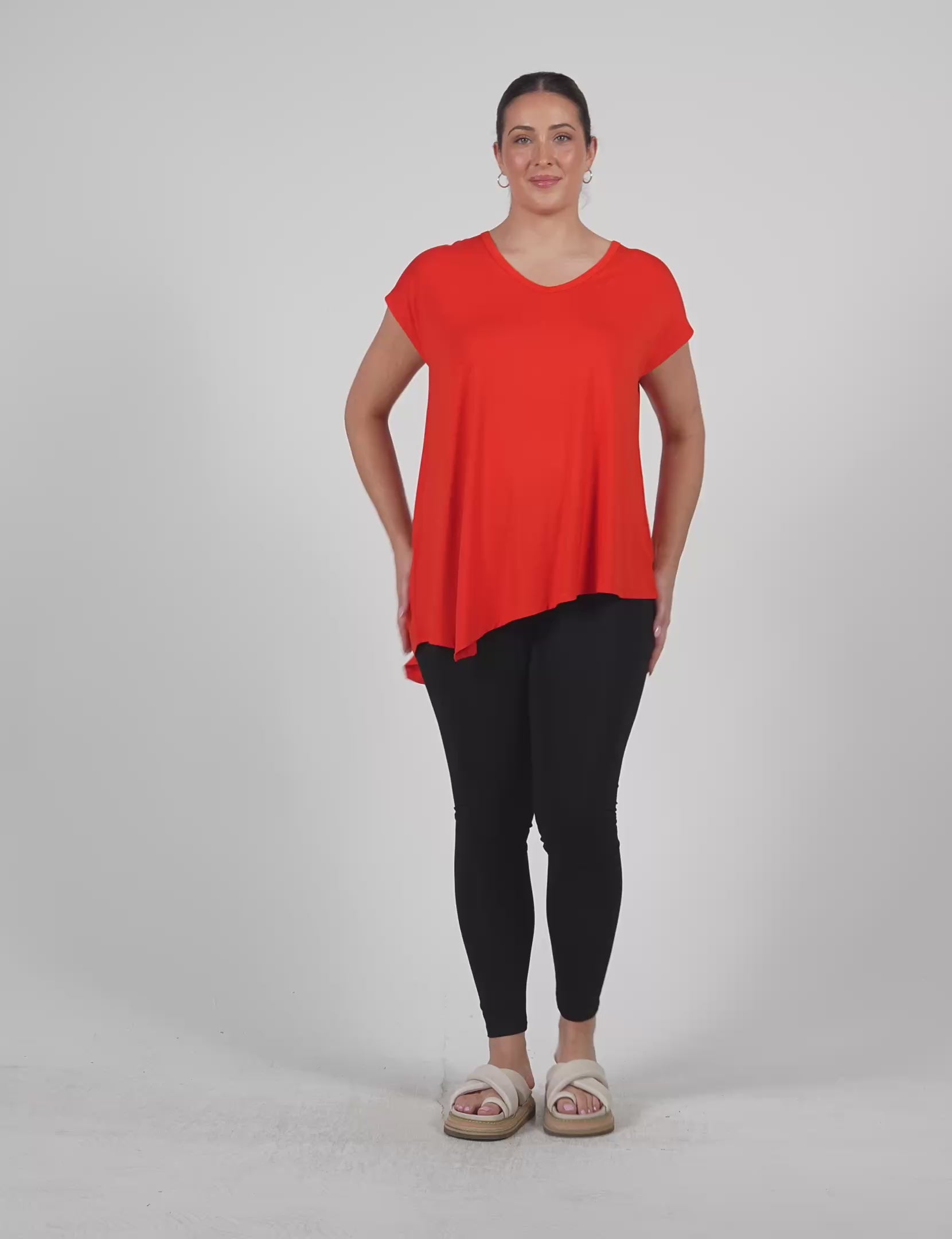 Holiday Asymmetrical Bamboo V-Neck T-Shirt - Fiery Red