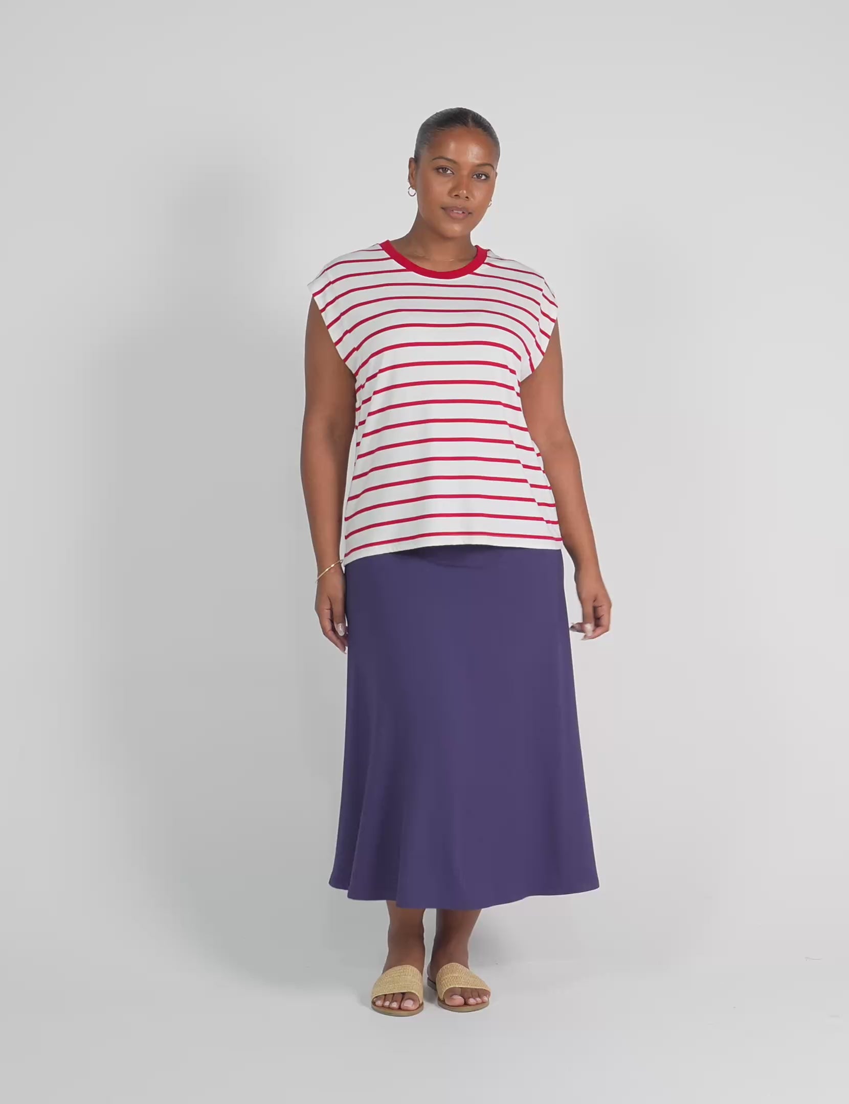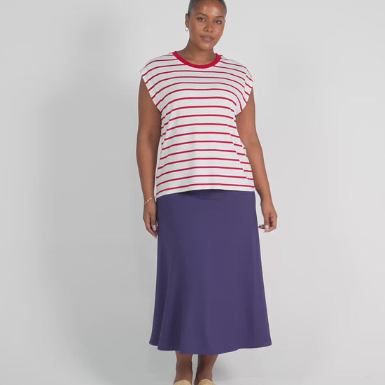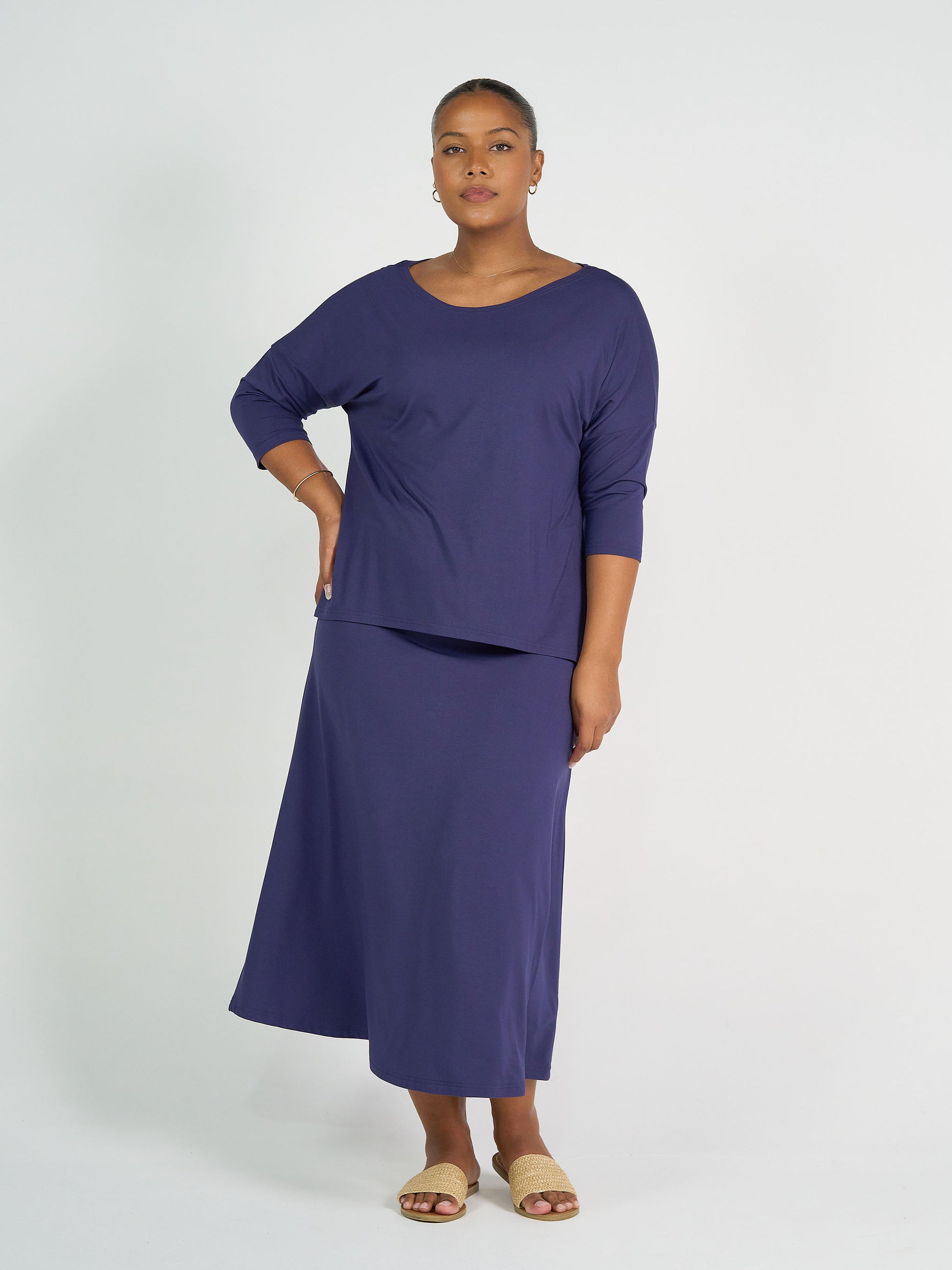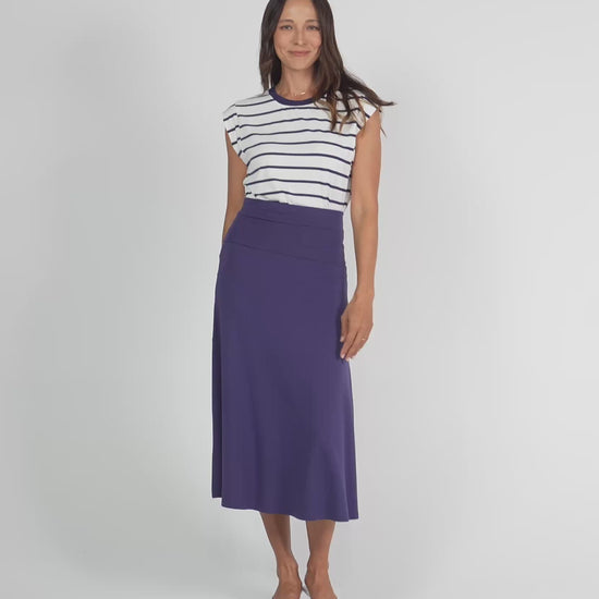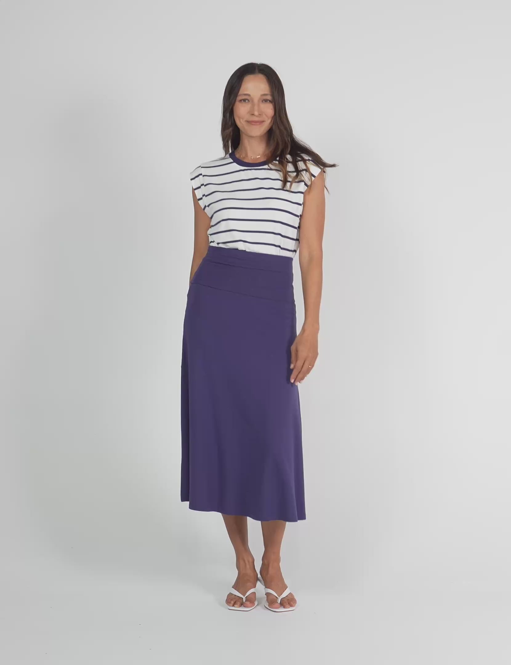 The Jackson Bamboo Maxi Skirt has a flattering A-line shape, with a wide ultra soft and stretchy waist band that can be left up to sit higher on the waist or folded down to sit on the hip.