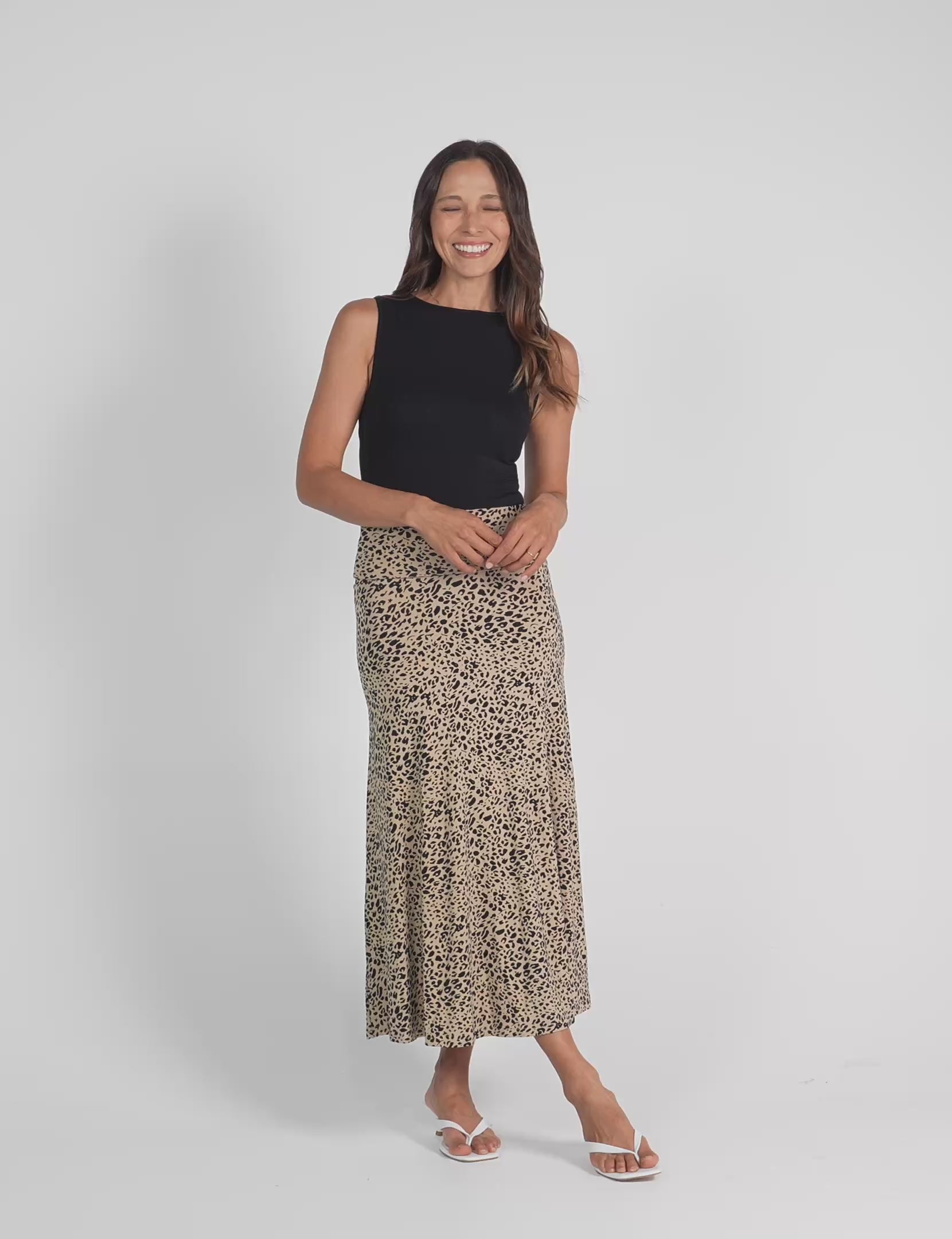 Jackson Bamboo Maxi Skirt - Brown Leopard