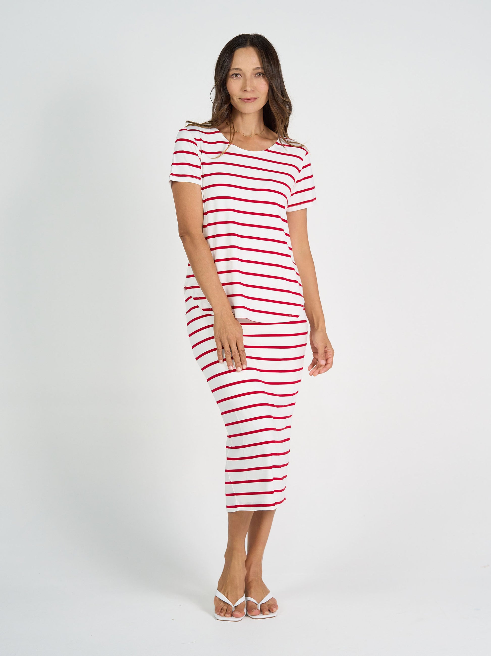 Maxi Bamboo Whitney Tube Skirt - Lipstick & White Stripe