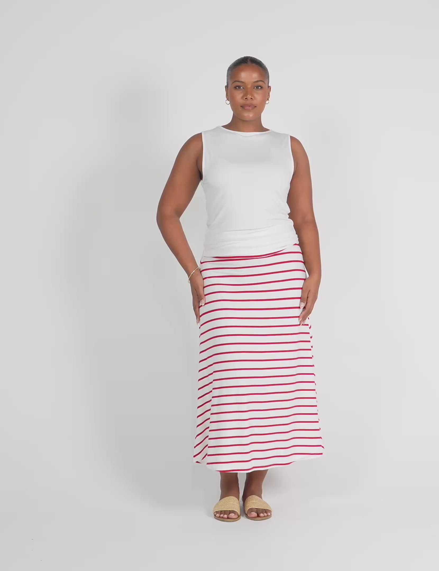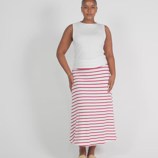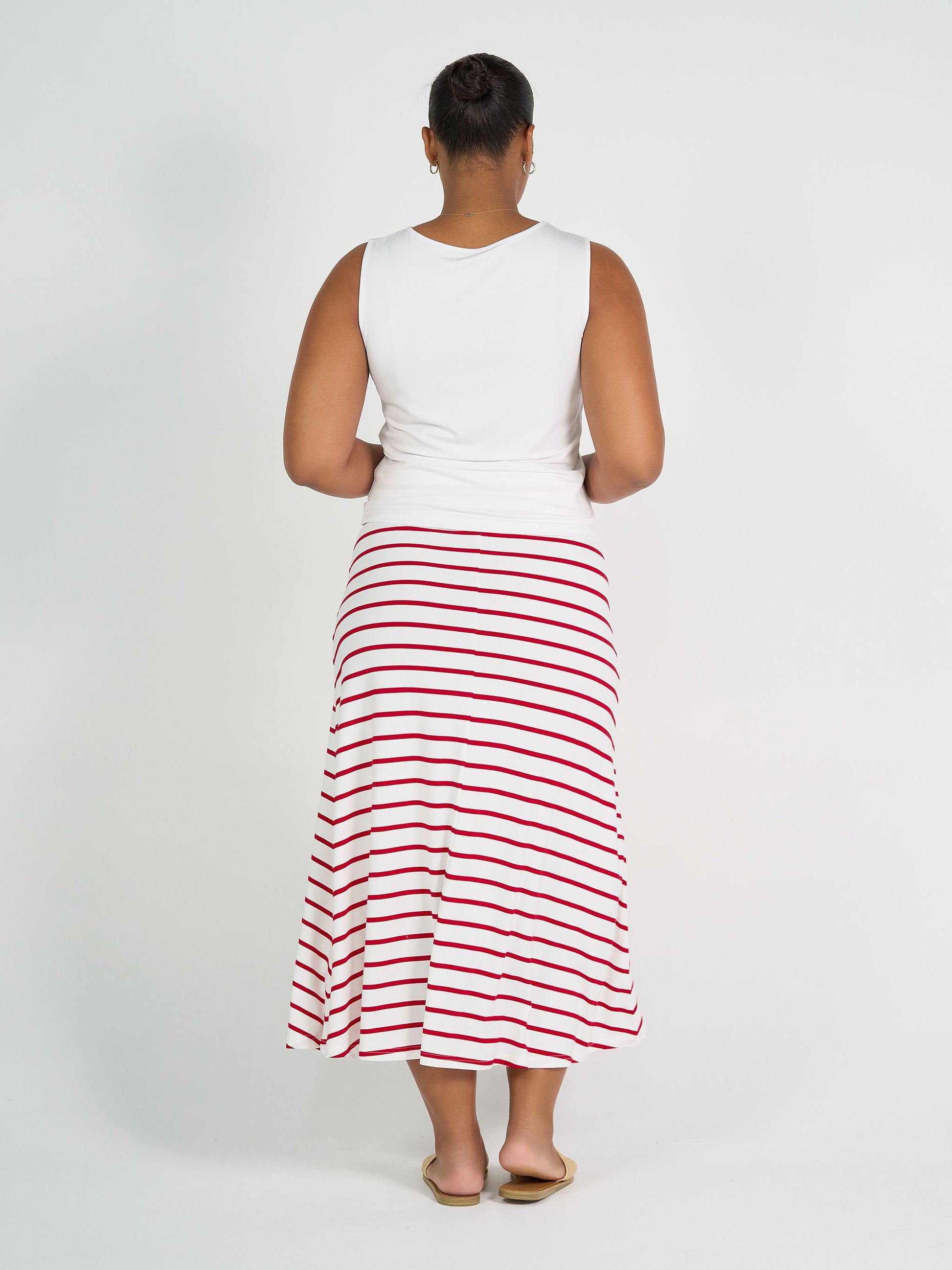 Jackson Bamboo Maxi Skirt - Lipstick & White Stripe