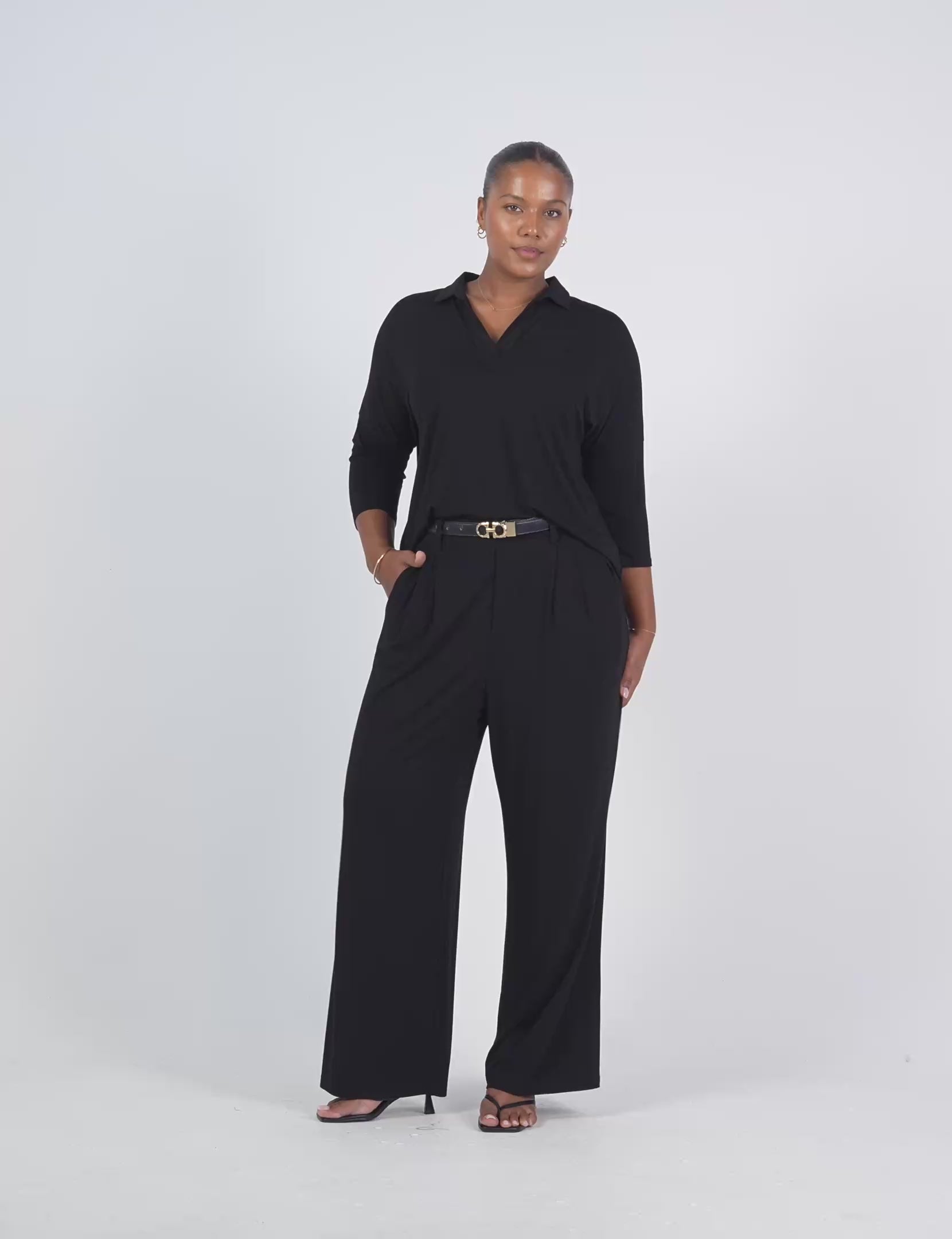 Our latest arrival! For those who LOVE our Camila Top, here is the collared version. Perfect for lounging or travelling, this is a lovely and stretchy style made with our signature, luxuriously soft bamboo fabric. Featuring a v-neck and collar, 3/4 sleeves and relaxed box fit with gentle curved hem at back. Perfect for those golf days! This top offers casual style with a touch of sophistication. This versatile top is made to flatter not too loose and not too tight.