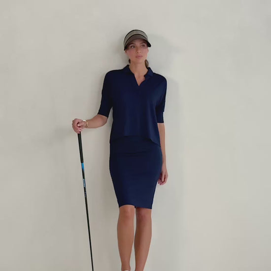 Our latest arrival! For those who LOVE our Camila Top, here is the collared version. Perfect for lounging or travelling, this is a lovely and stretchy style made with our signature, luxuriously soft bamboo fabric. Featuring a v-neck and collar, 3/4 sleeves and relaxed box fit with gentle curved hem at back. Perfect for those golf days! This top offers casual style with a touch of sophistication. This versatile top is made to flatter not too loose and not too tight.