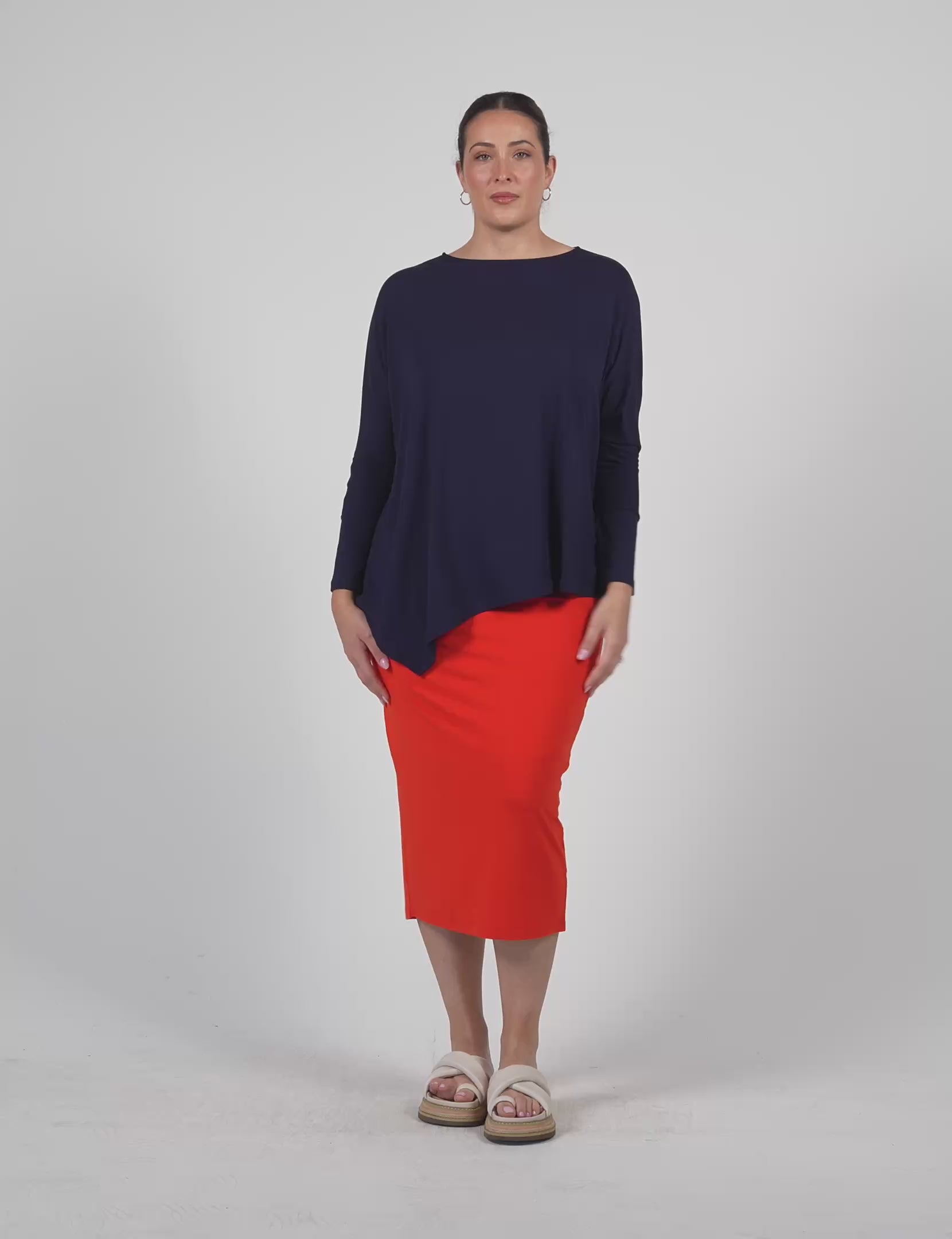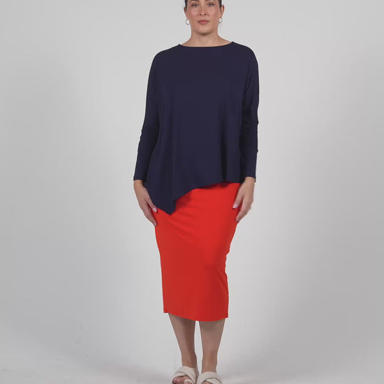 This skirt is ideal for the 9-5, wear with a tucked in shirt, tee or long sleeve top for the smart, work ready look. Or for a casual look, slip on with the Janis Bamboo Tee and your favourite joggers. Also available in mid length.