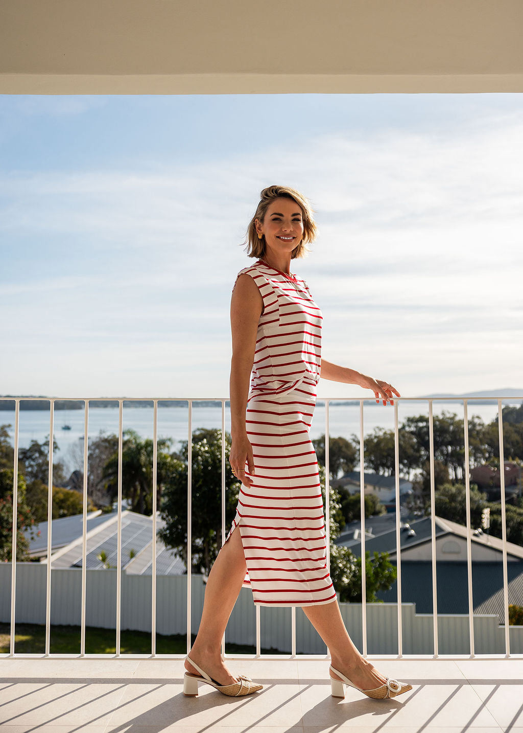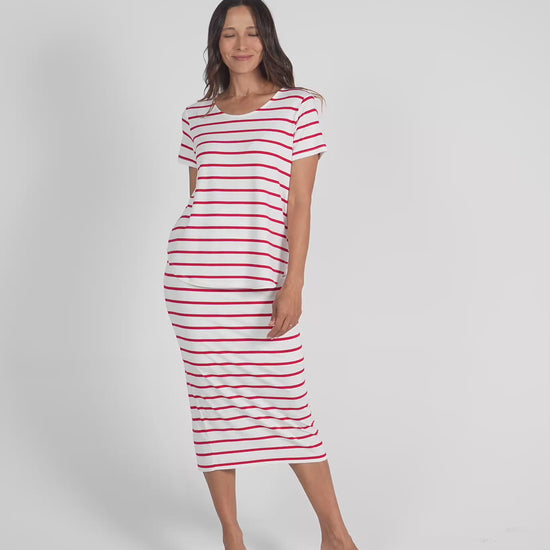 Maxi Bamboo Whitney Tube Skirt - Lipstick & White Stripe