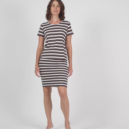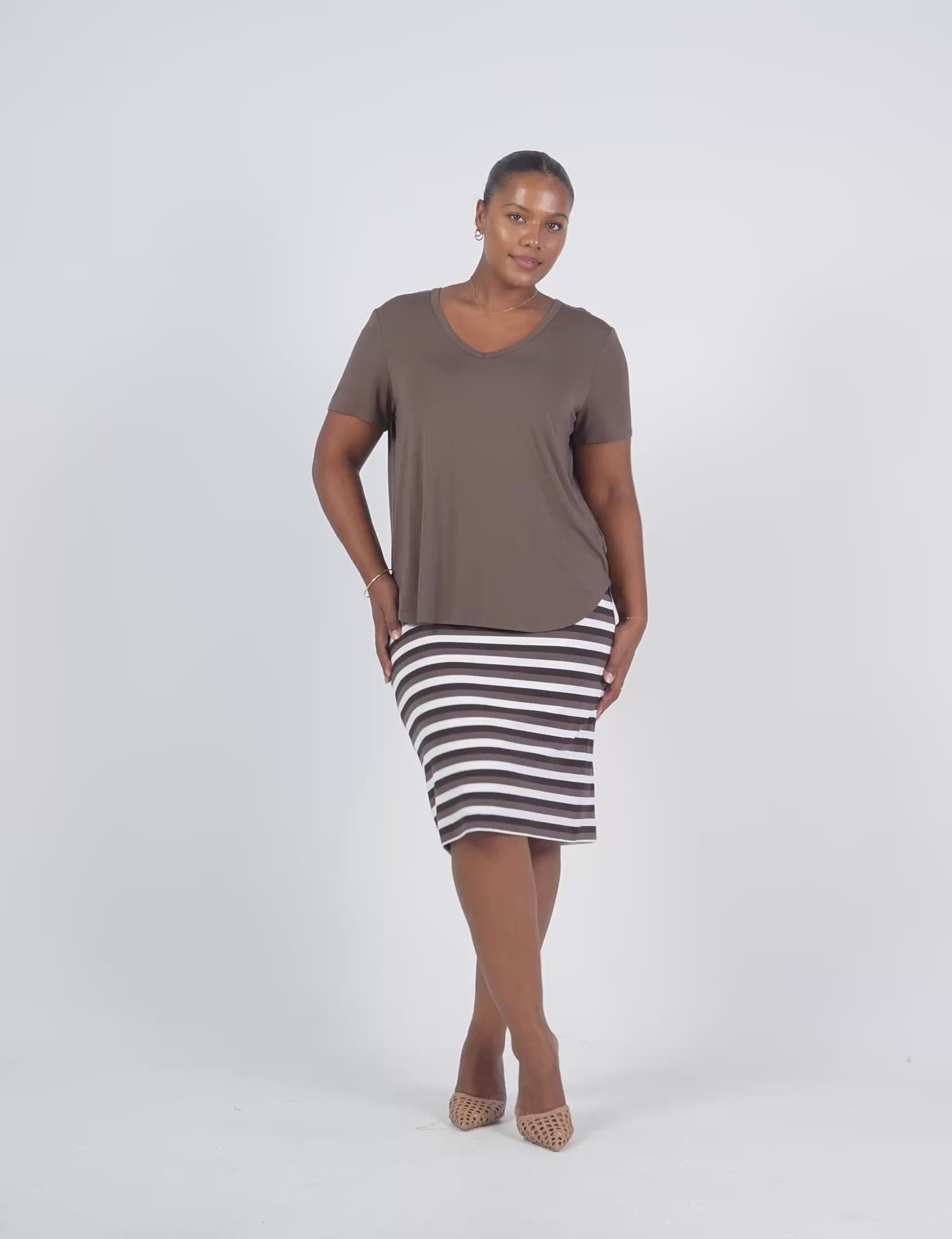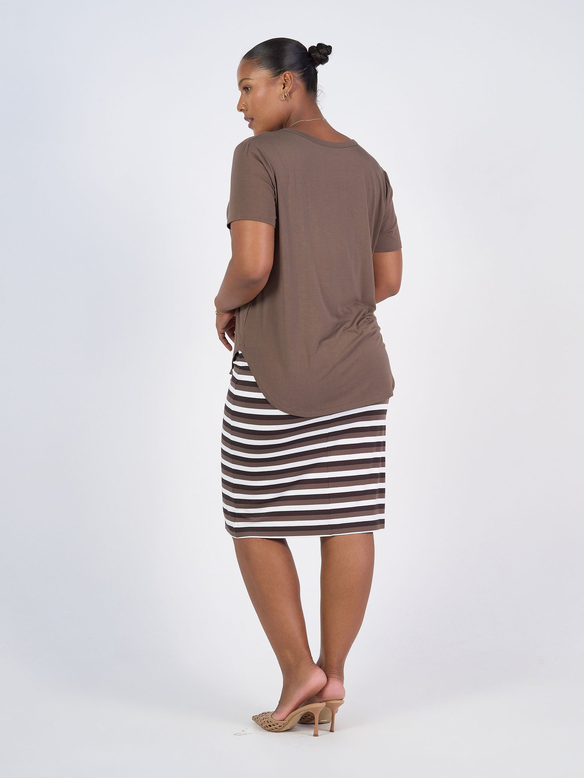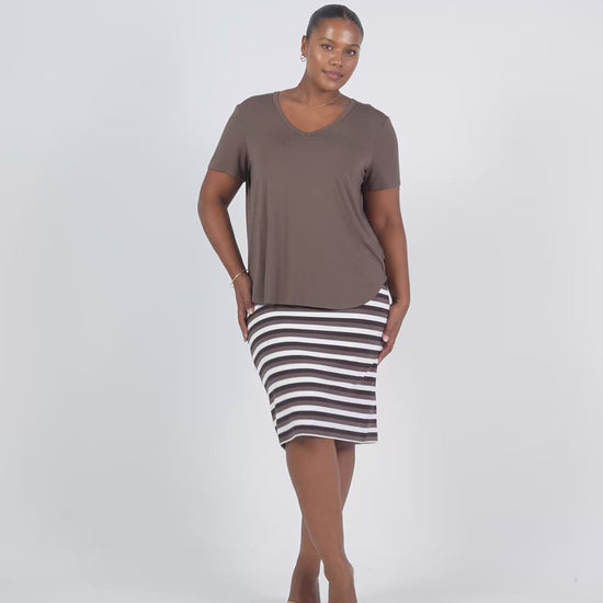 Midi Bamboo Whitney Tube Skirt - Brown Stripe