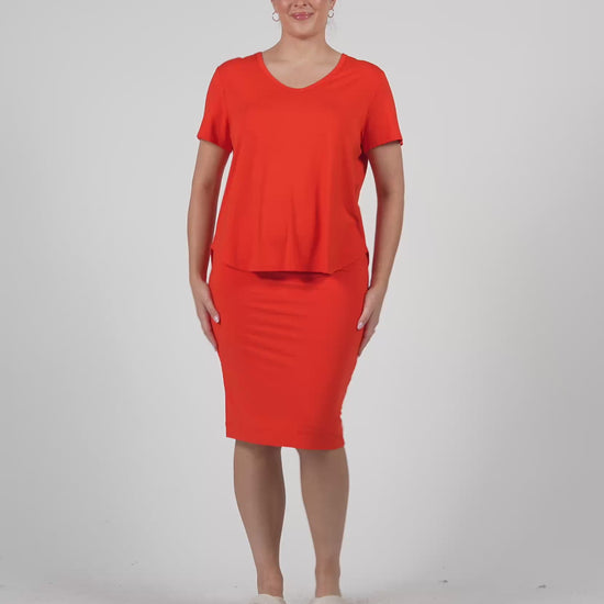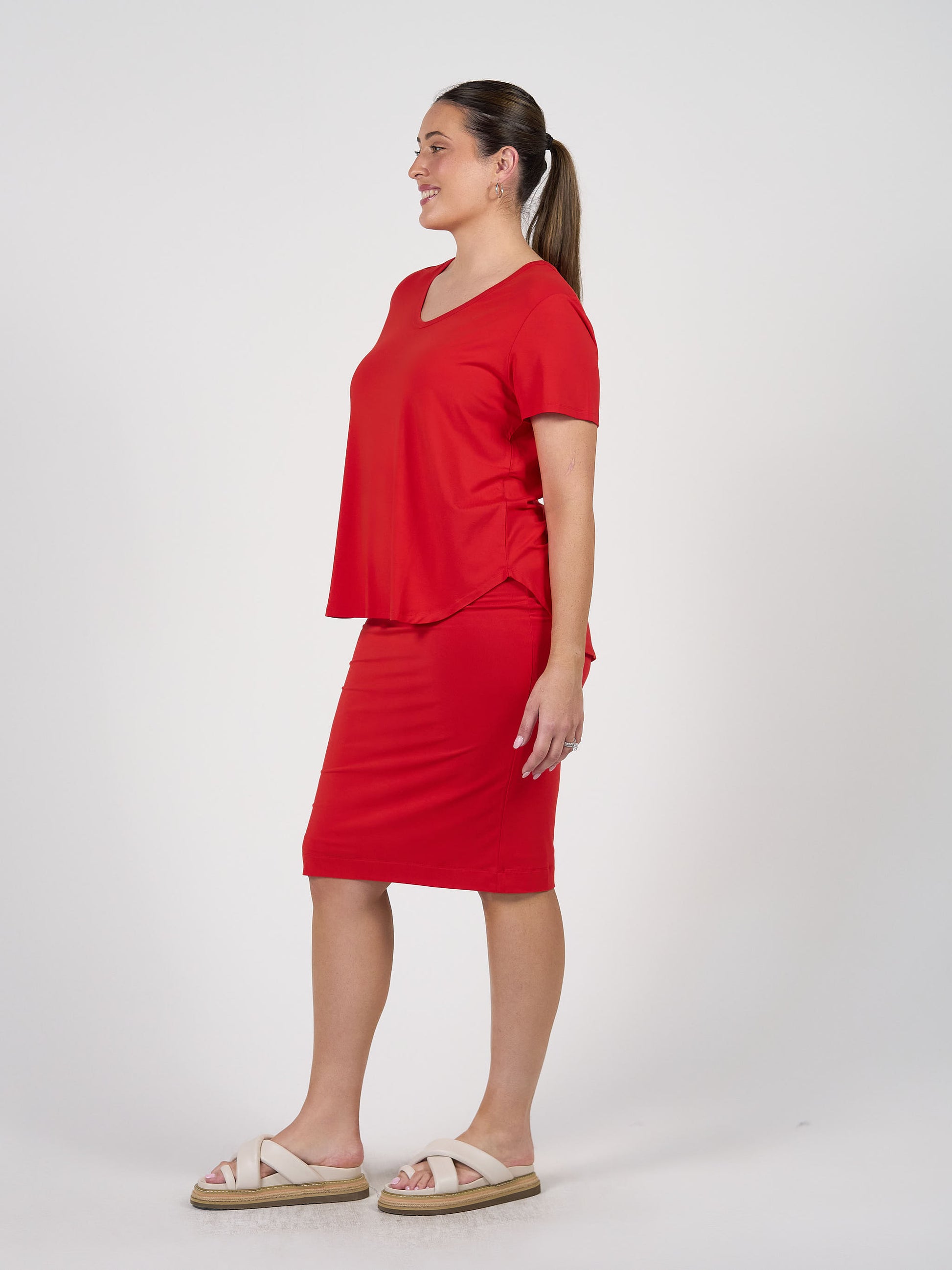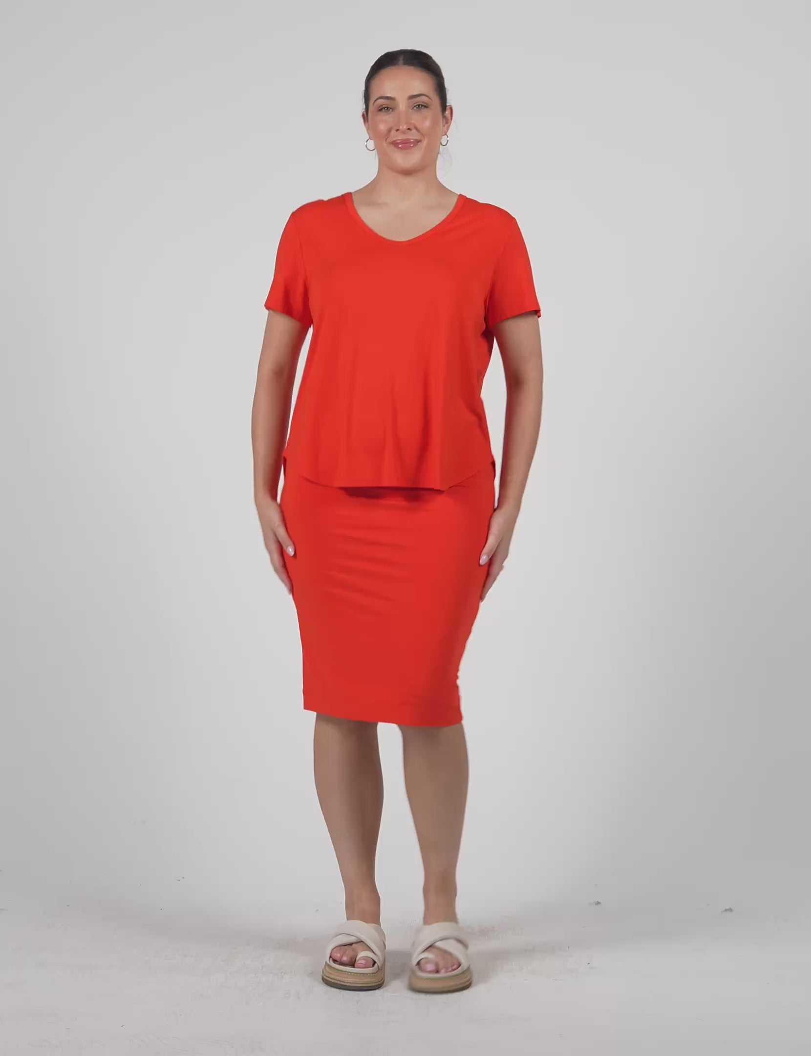 Midi Bamboo Whitney Tube Skirt - Fiery Red