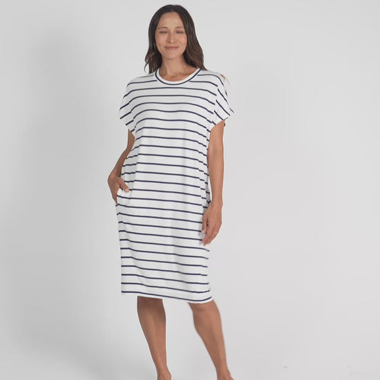 Nicks Bamboo Short Sleeve T-Shirt Dress - Blue & White Stripe