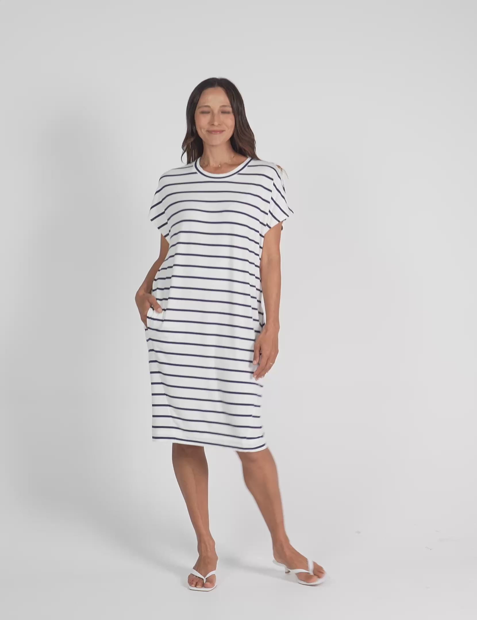 Your new go to for those days that are calling for the ultimate fusion of comfort and style. Constructed with our luxuriously soft Bamboo fabric, the sleek style of the Nicks Bamboo Tee Dress curves slightly into the body. Featuring a crew neckline and in-seam pockets at the front. You won't want to take this dress off.