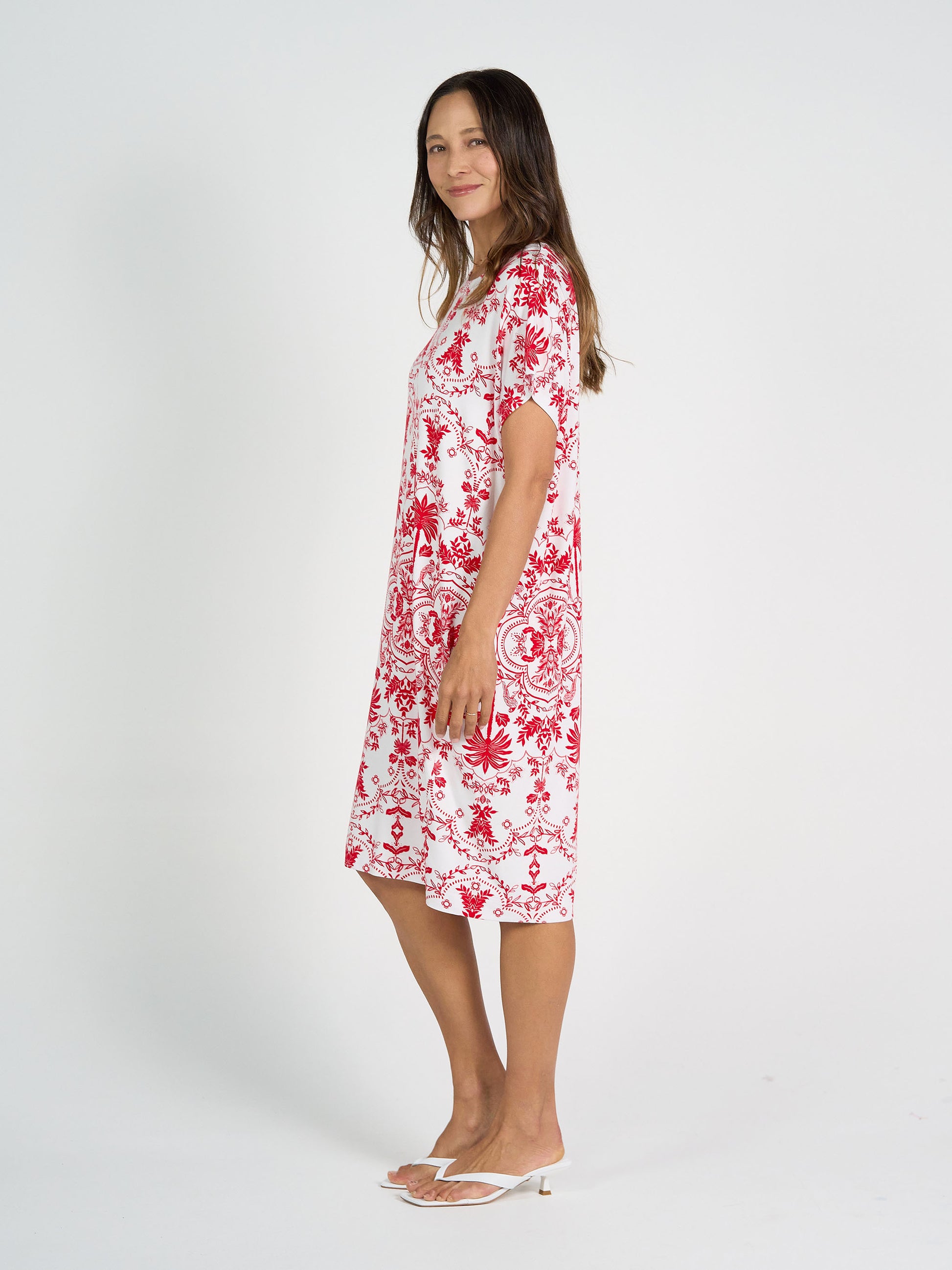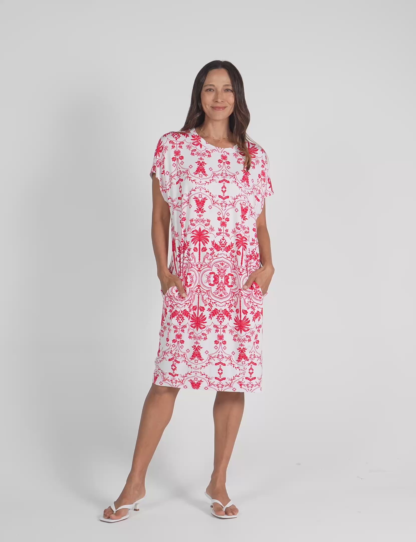 Nicks Bamboo Short Sleeve T-Shirt Dress - Lipstick Palm