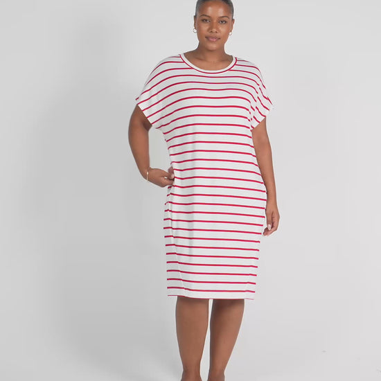 Nicks Bamboo Short Sleeve T-Shirt Dress - Lipstick & White Stripe