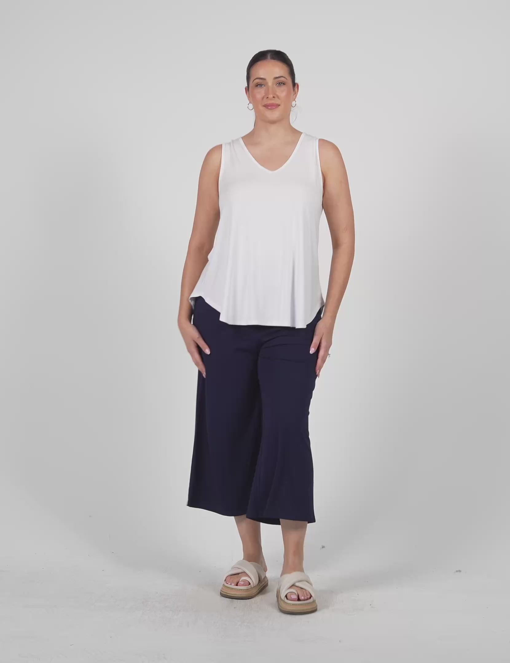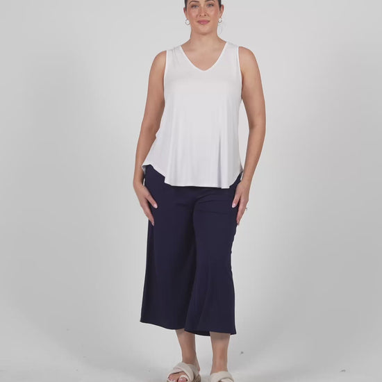 Rihanna V-Neck Bamboo Tank Top - White