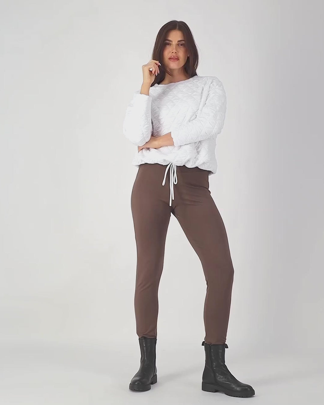 Crafted with our custom bamboo & polyester quilted fabric for extra warmth and coziness. Featuring a round crew neck, drop shoulder and drawstring feature on hemline. Wear with our Gaga Bamboo Cuffed Track Pant for the perfect lounging combo!