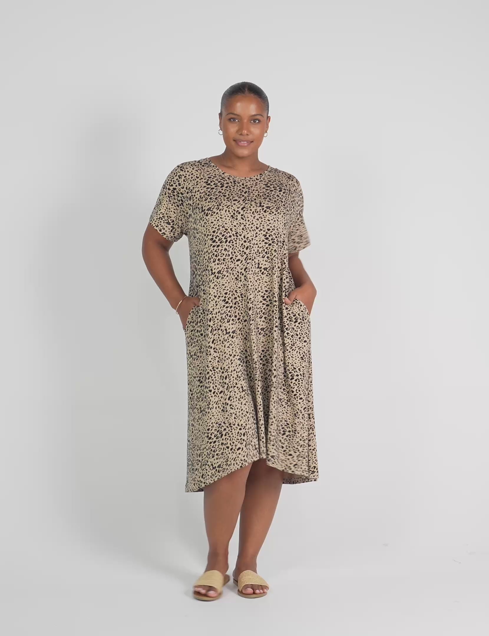 Our Sade Bamboo Midi Dress is the perfect T-Shirt Dress to add to your collection. Featuring slightly longer short sleeves for arm coverage, a round wide neckline, below knee-length hem and pockets. This dress offers a flattering shape in our ultra soft, breathable bamboo fabric.