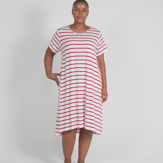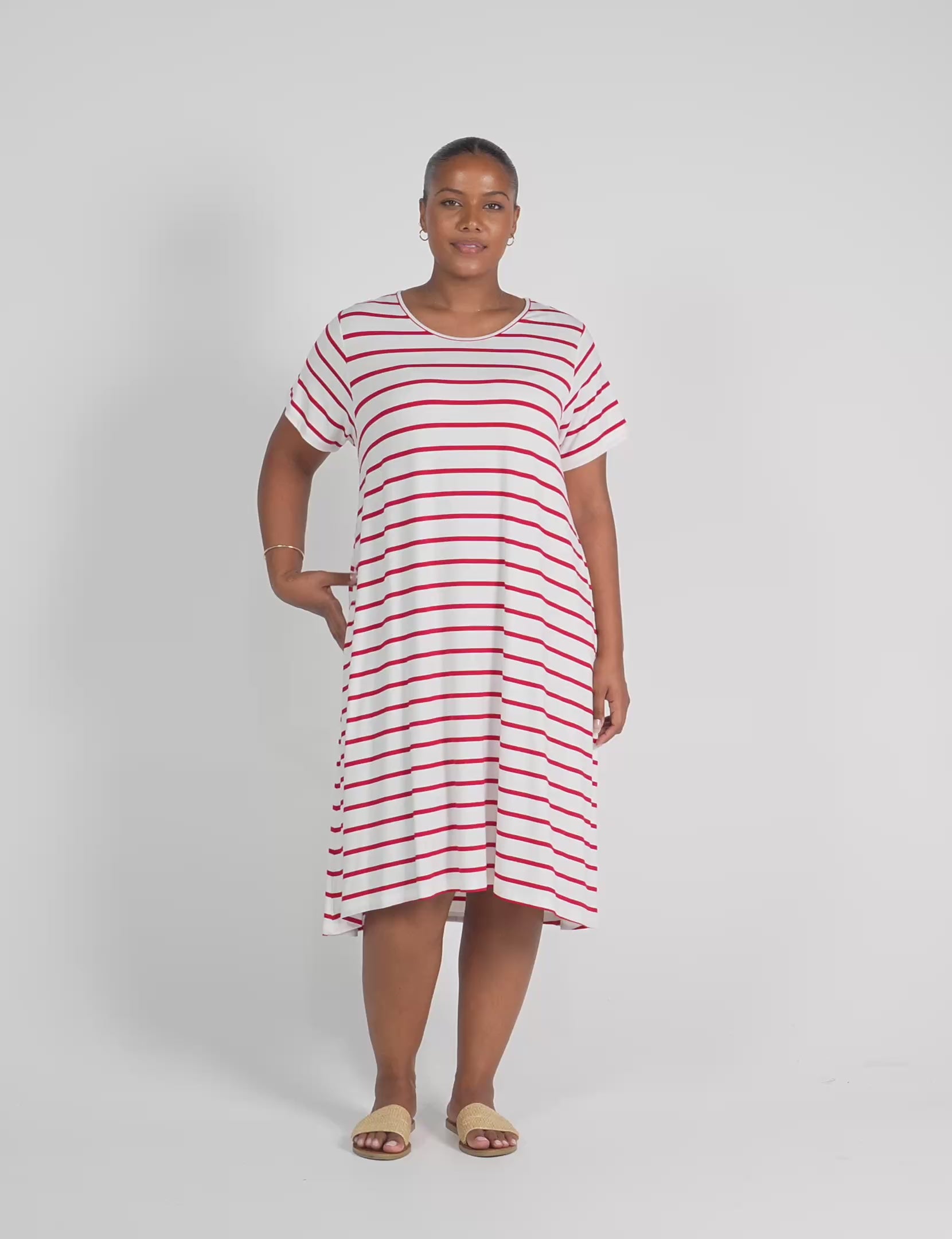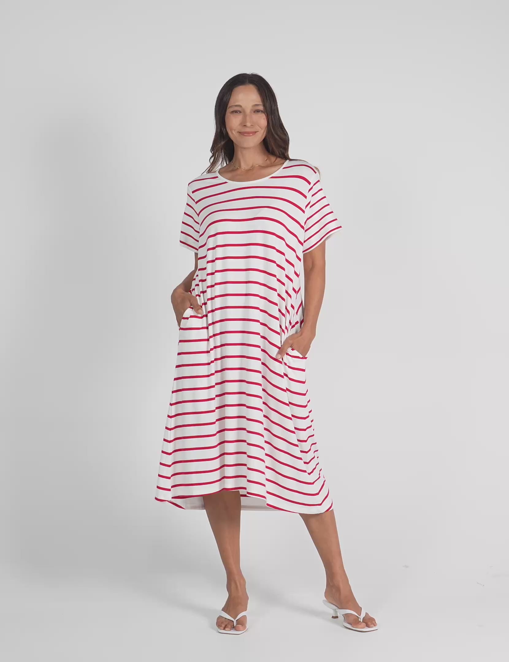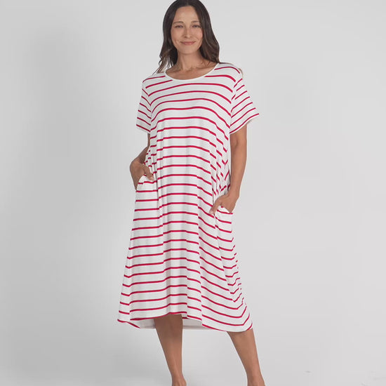 Sade Bamboo Midi Dress - Lipstick & White Stripe