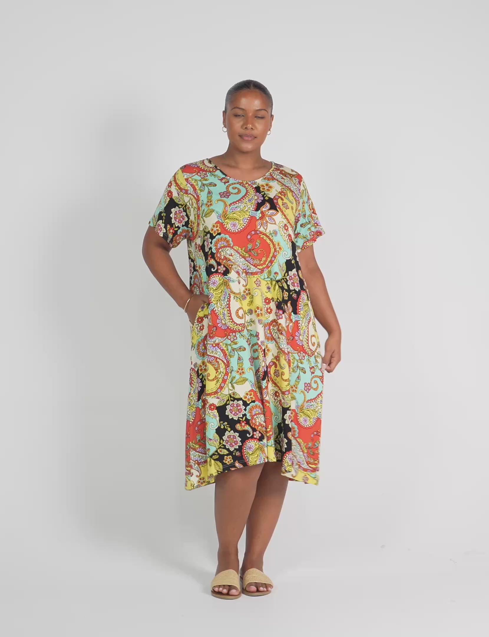 Our Sade Bamboo Midi Dress is the perfect T-Shirt Dress to add to your collection. Featuring slightly longer short sleeves for arm coverage, a round wide neckline, below knee-length hem and pockets. This dress offers a flattering shape in our ultra soft, breathable bamboo fabric.
