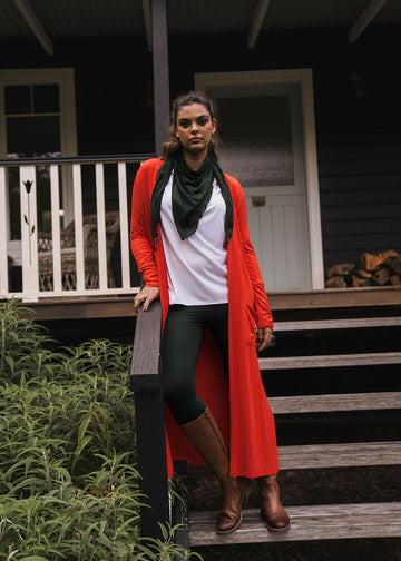 Bamboo Longline Pocket Cardigan - Fiery Red