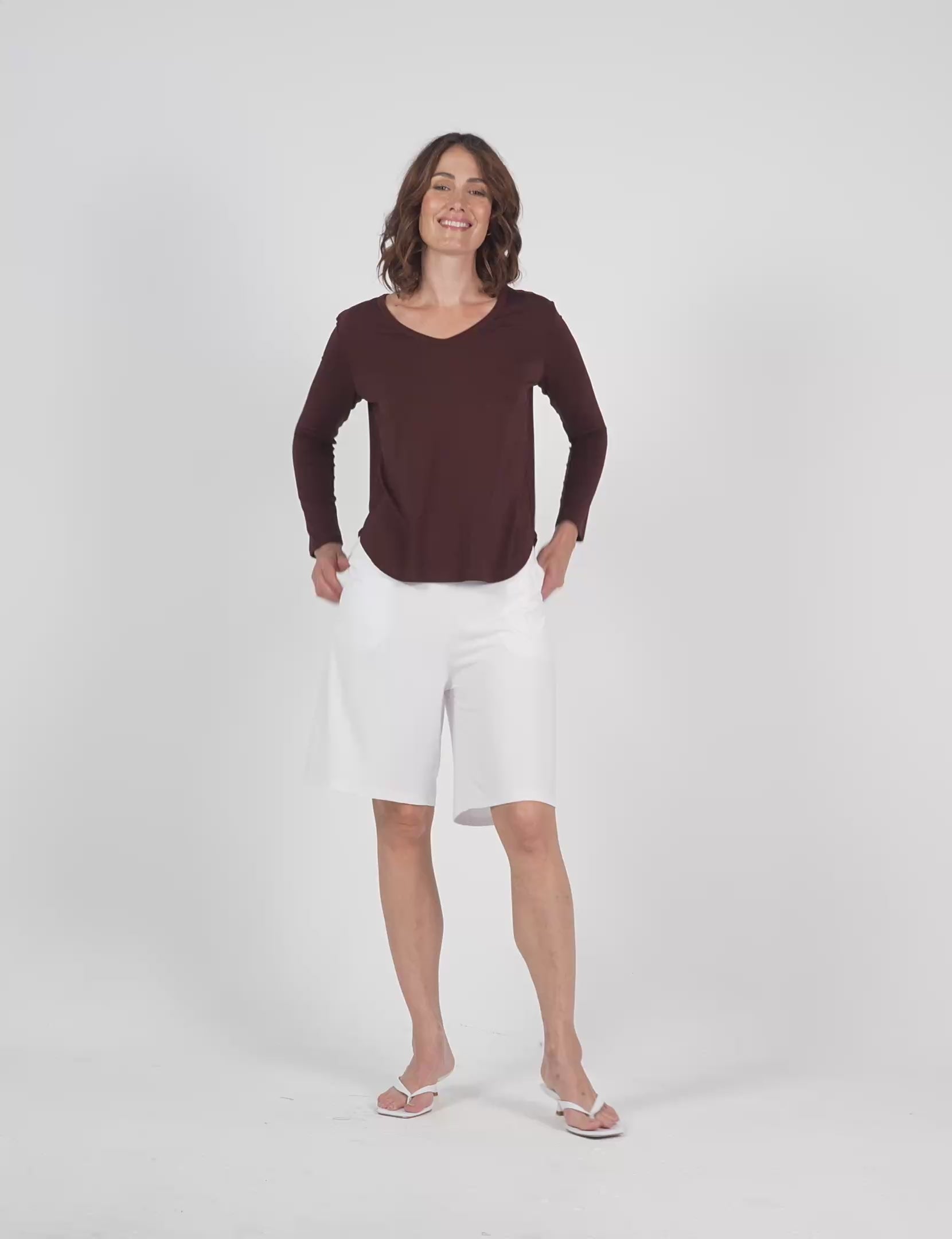 Sia V Neck Bamboo Longsleeve Top - Burgundy