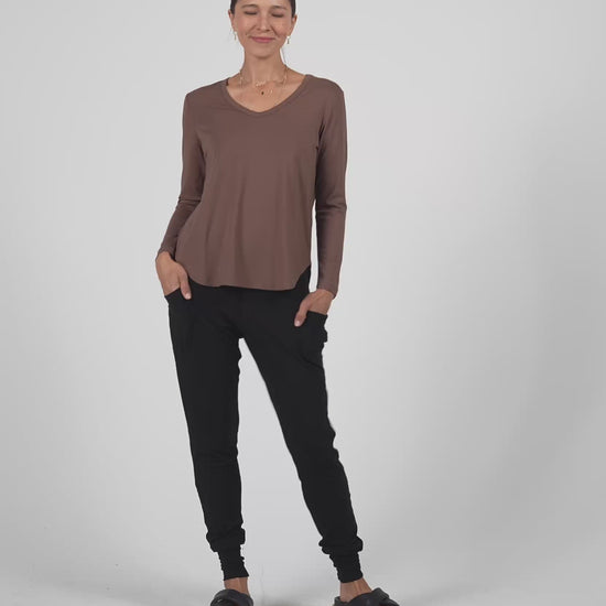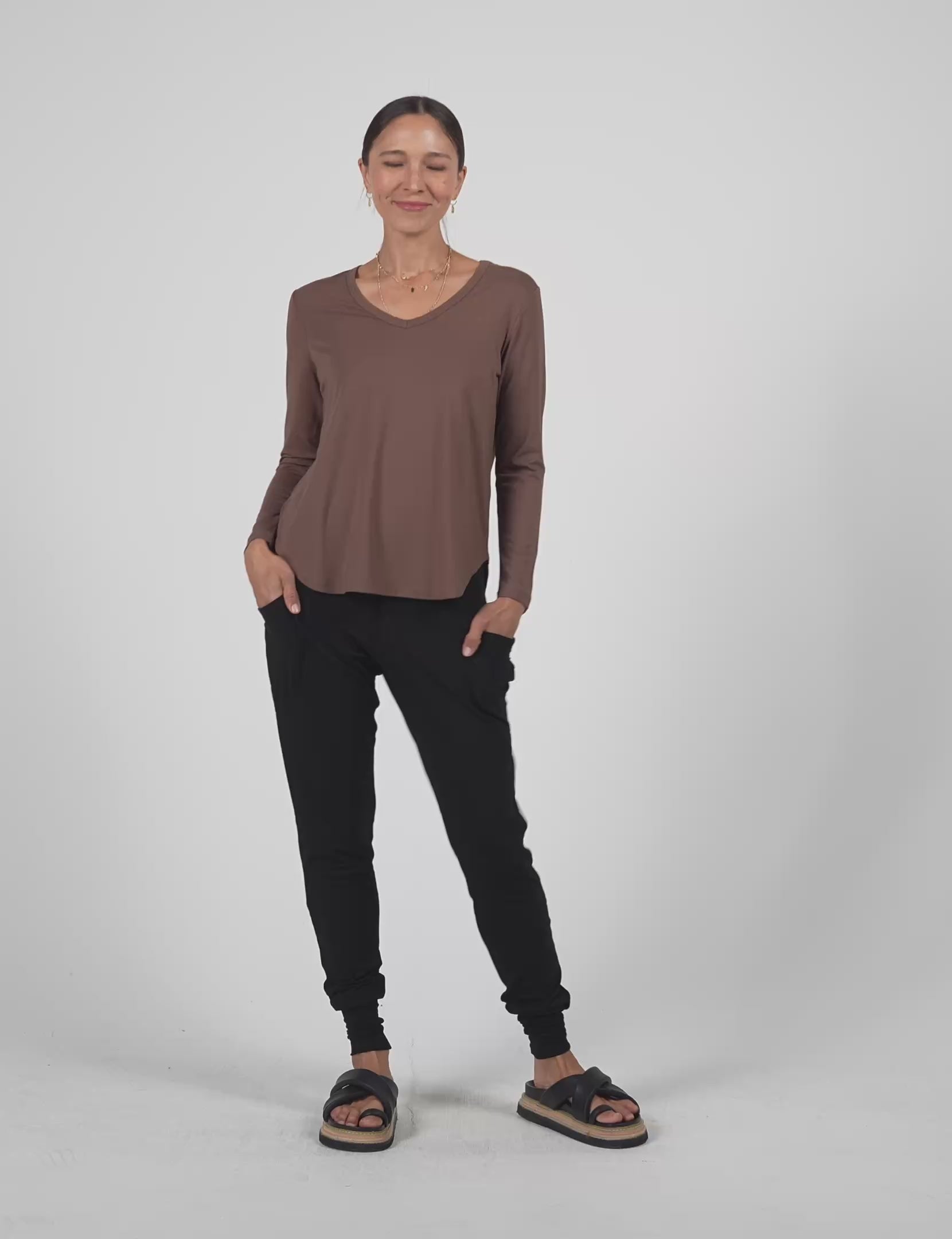 Sia V Neck Bamboo Longsleeve Top - Chocolate