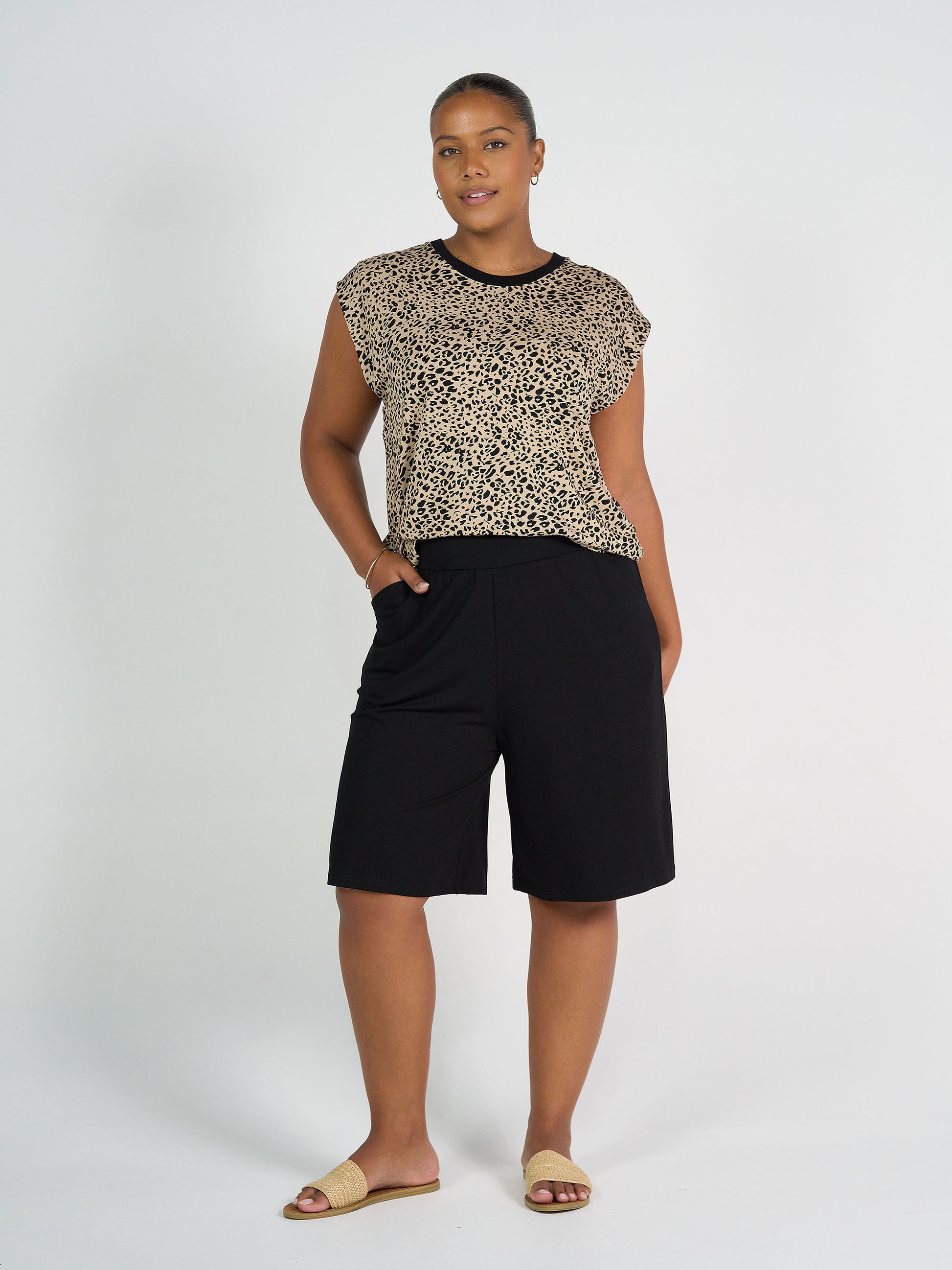 Donna Cap Sleeve Bamboo Tee - Brown Leopard