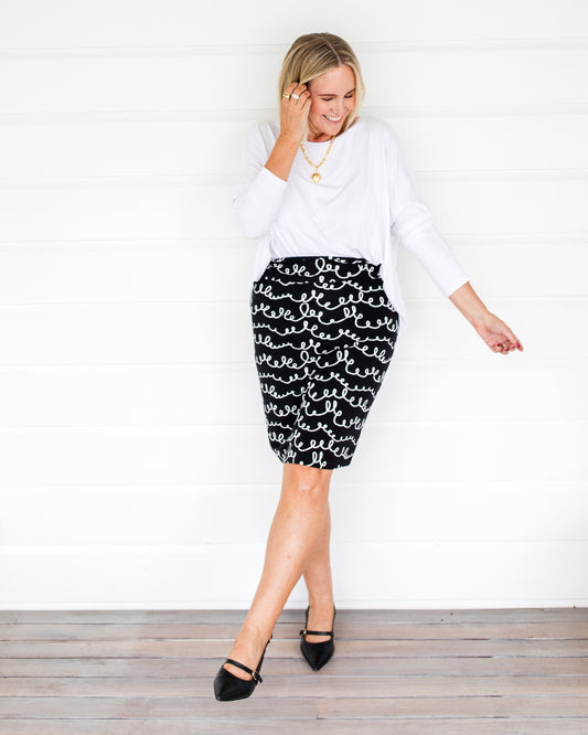 Midi Bamboo Whitney Tube Skirt - Squiggle Print