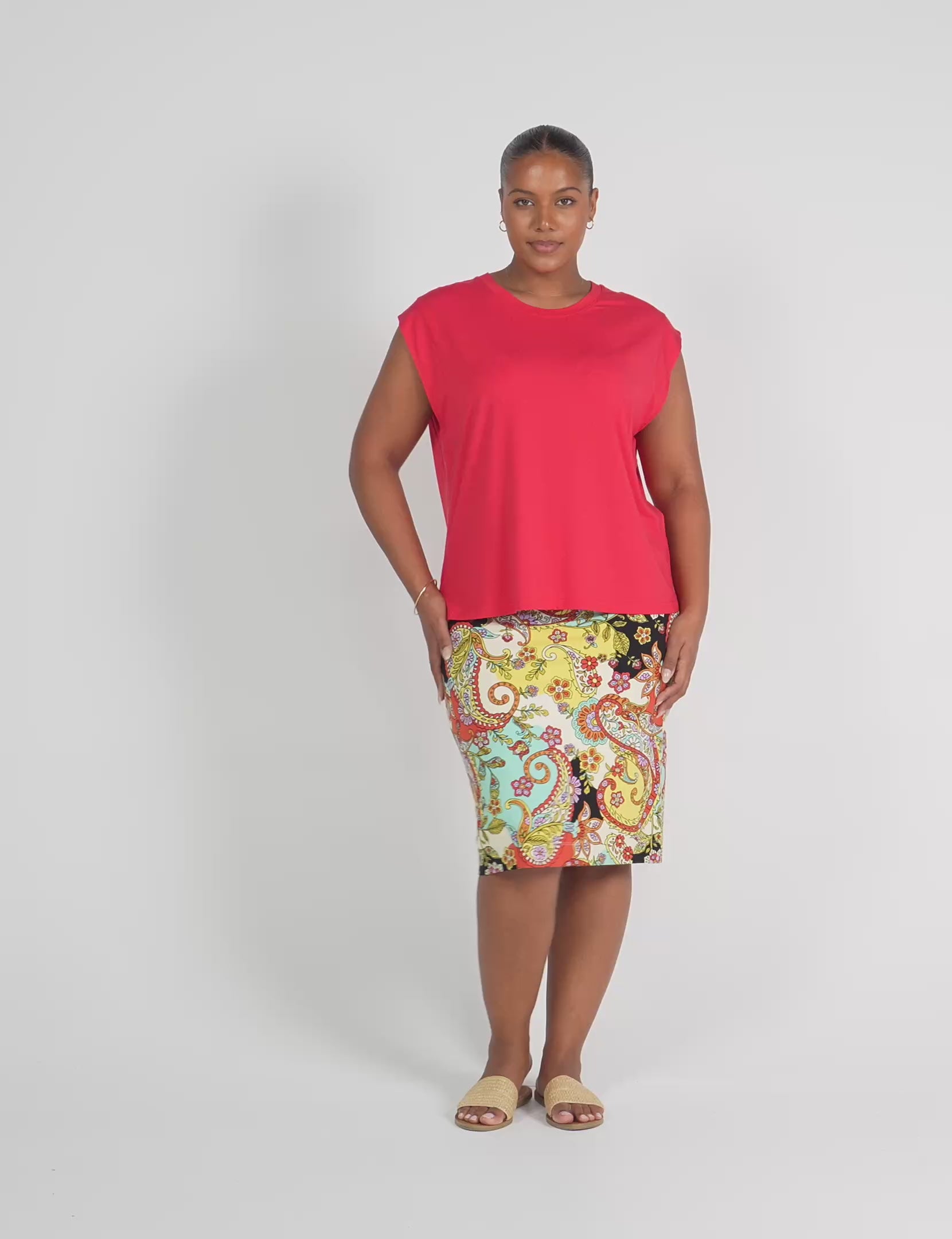 This skirt is ideal for the 9-5, wear with a tucked in shirt, tee or long sleeve top for the smart, work ready look. Or for a casual look, slip on with the Janis Bamboo Tee and your favourite joggers. Also available in maxi length.