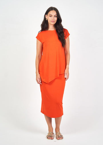 Toni Asymmetrical Bamboo T-Shirt - Fiery Red