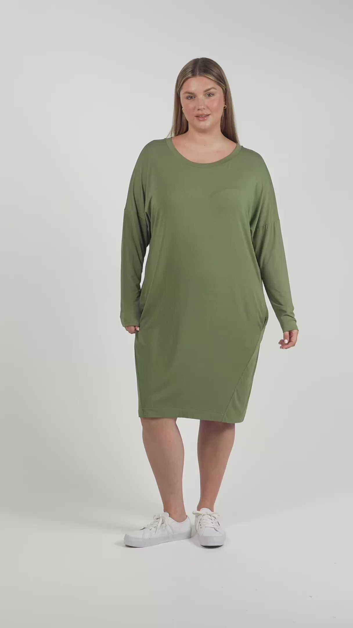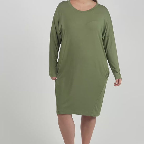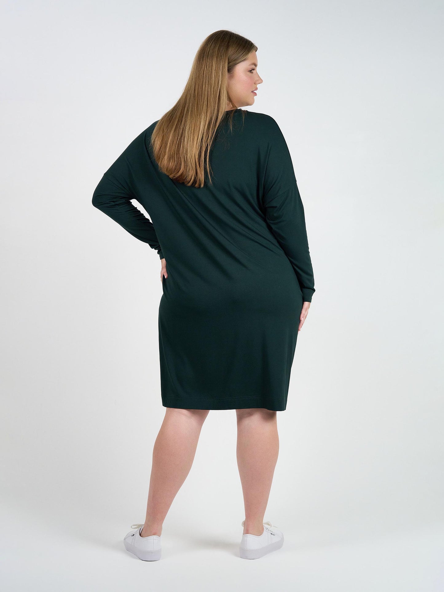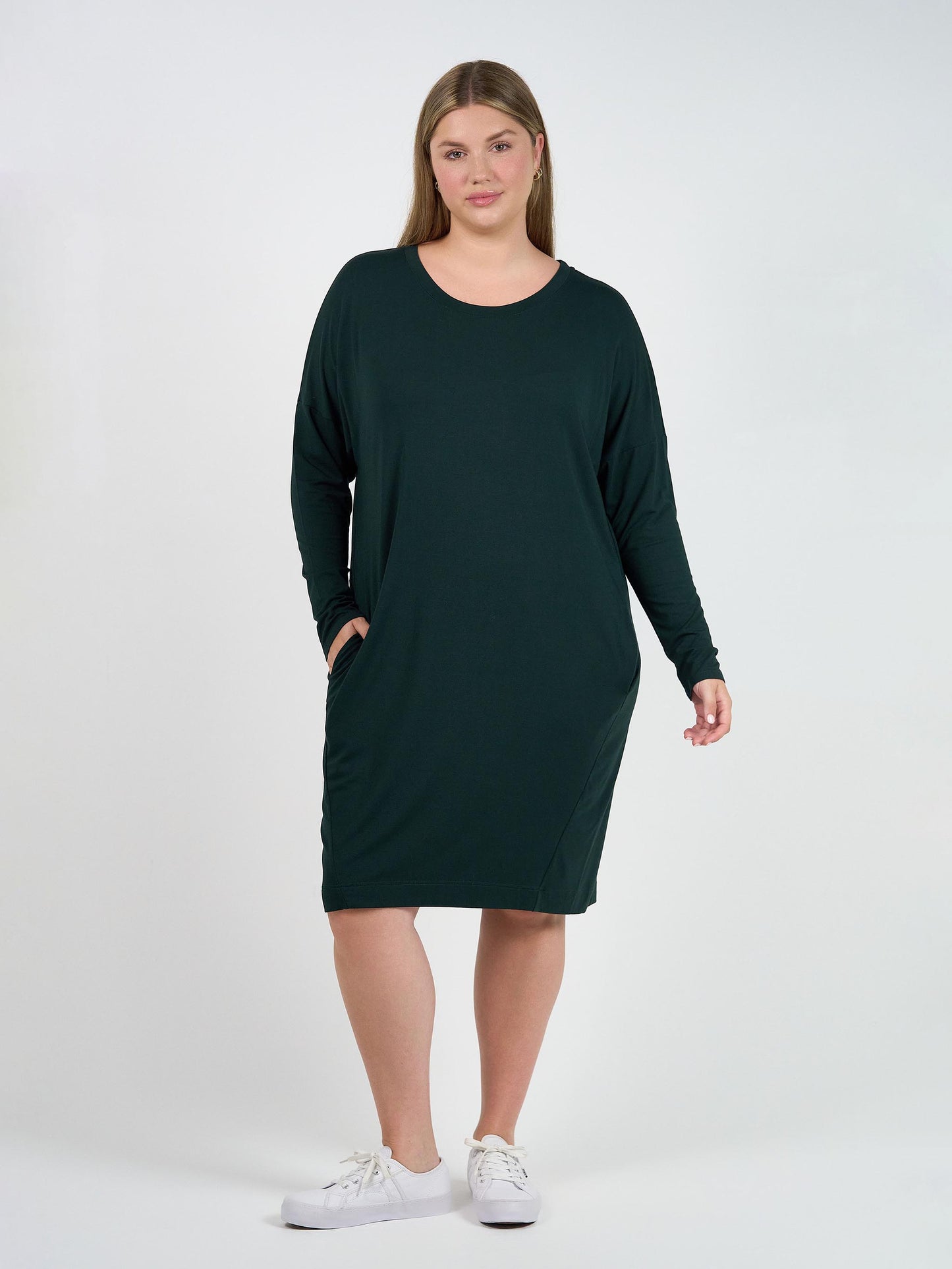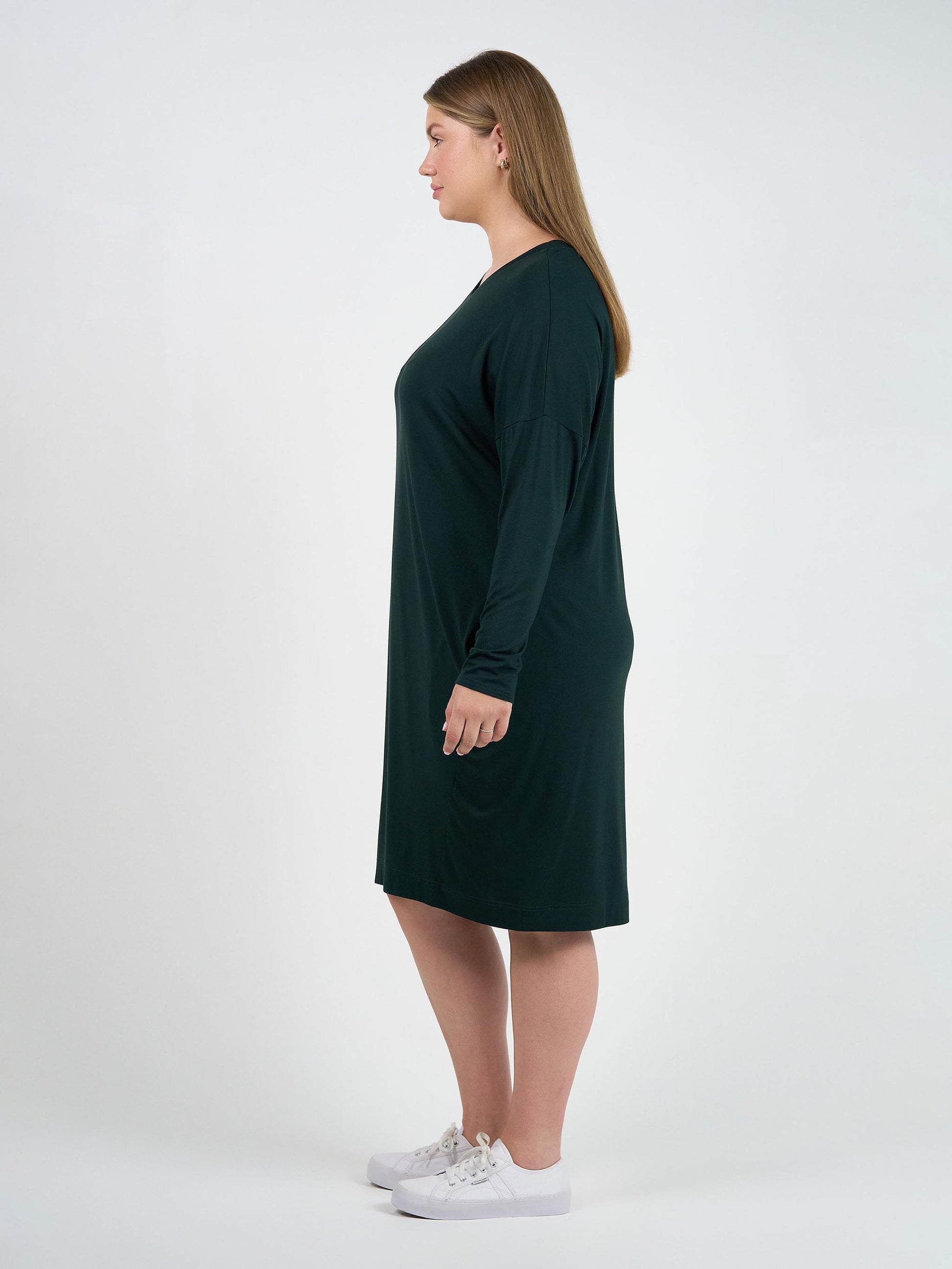 Turner Long-Sleeve Bamboo T-Shirt Dress - Dark Green