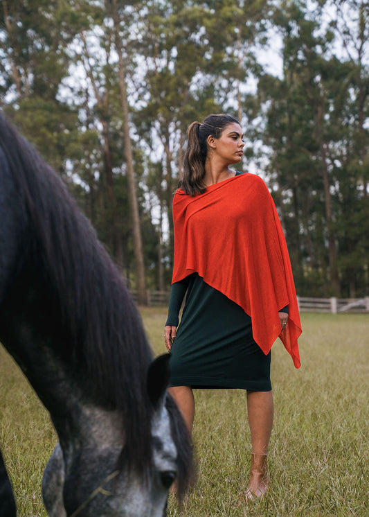 Carrie Cashmere/Bamboo Poncho - Fiery Red