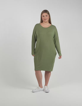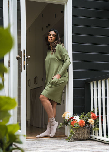 Turner Long-Sleeve Bamboo T-Shirt Dress - Olive