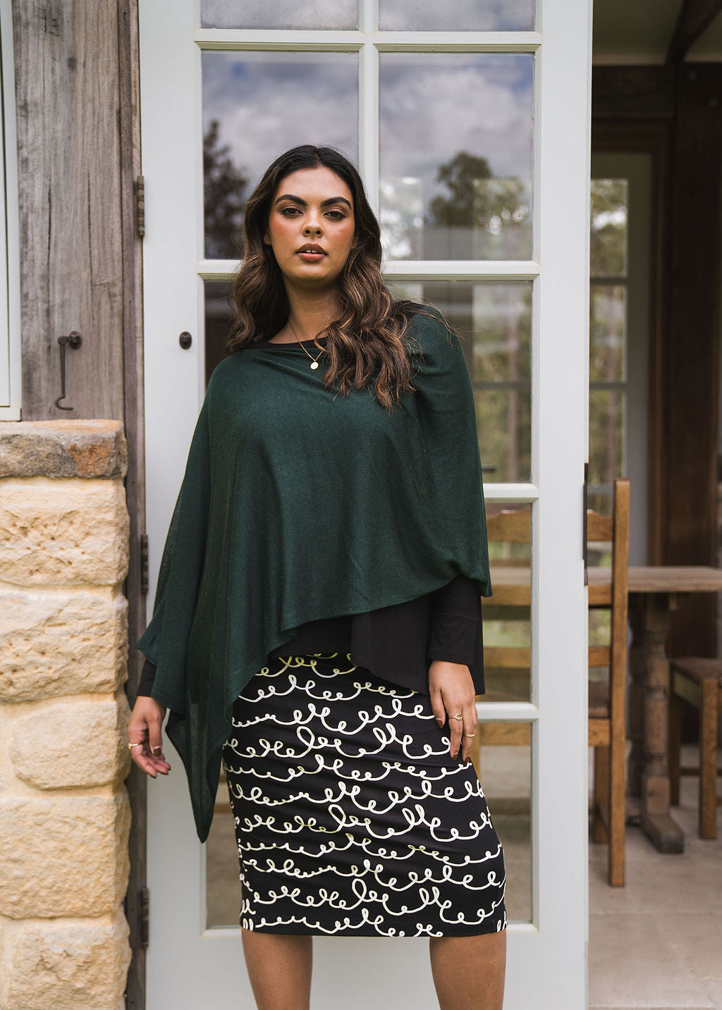 Carrie Cashmere/Bamboo Poncho - Dark Green