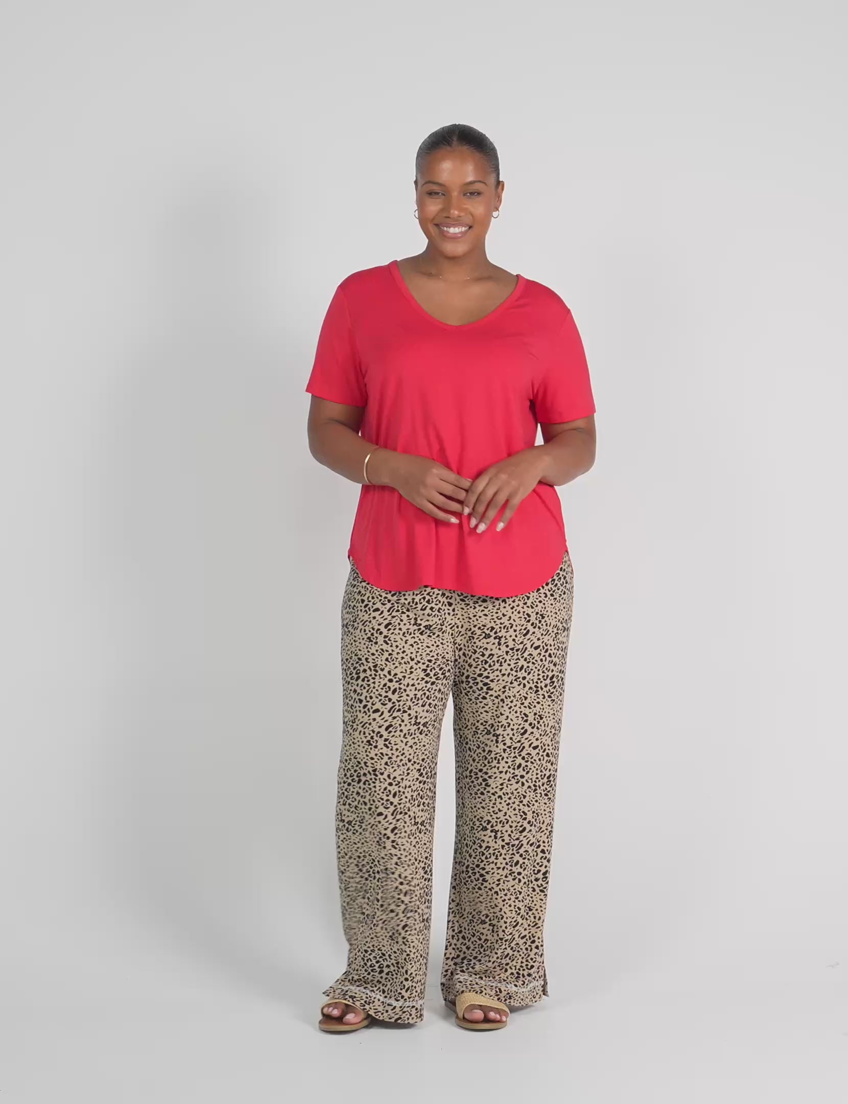 Veronica Bamboo V-Neck T-Shirt - Lipstick